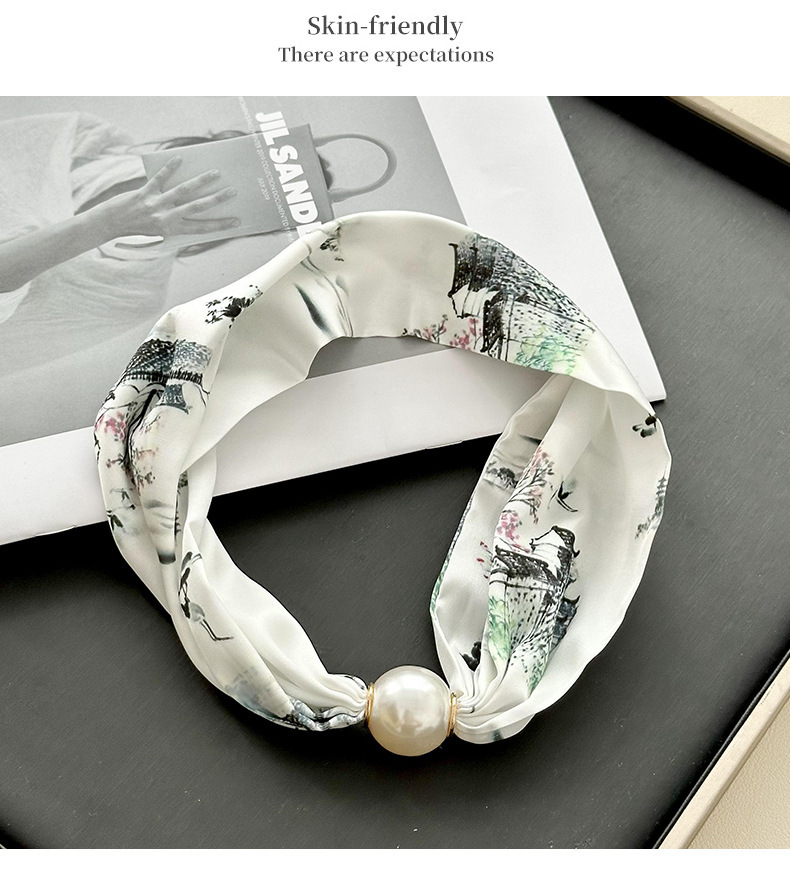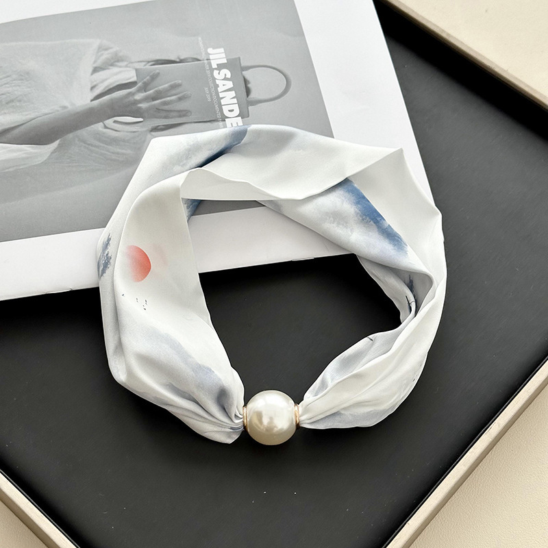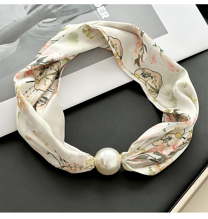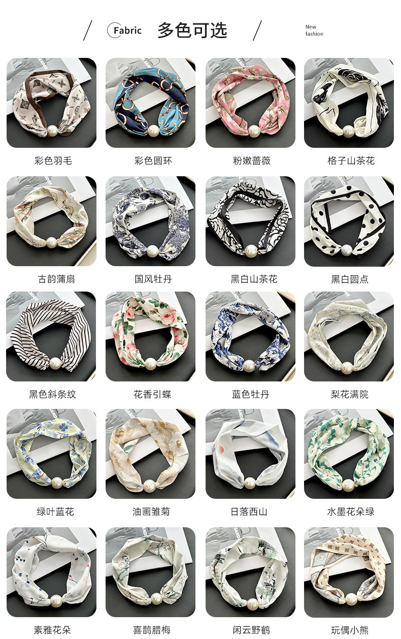 실크 스카프 긴 하이 엔드 봄과 여름 새로운 한국 진주 목걸이 조커 목 보호 스카프 마그네틱 버클 실크 스카프 도매스토어 가기