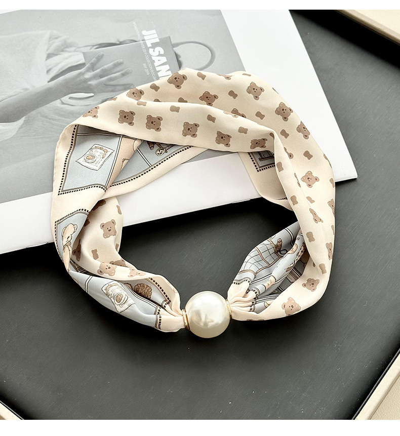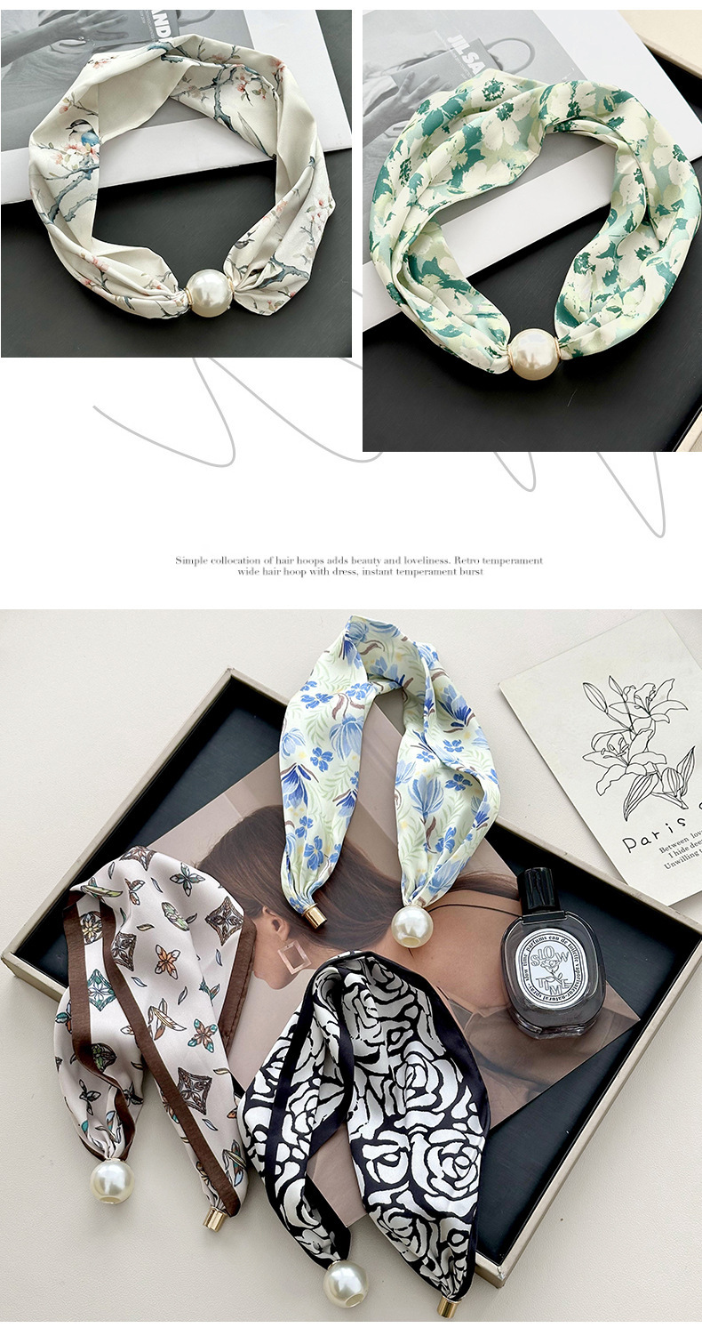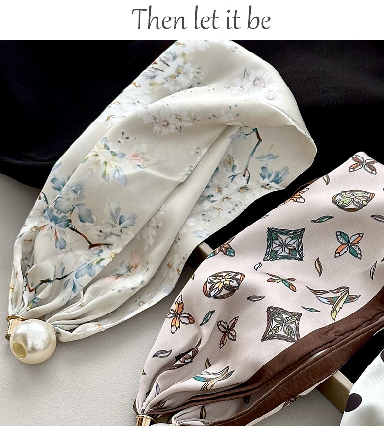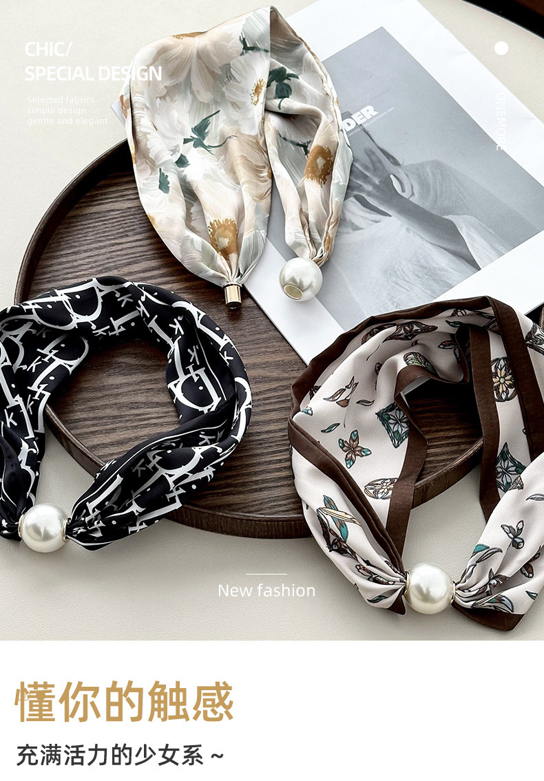 실크 스카프 긴 하이 엔드 봄과 여름 새로운 한국 진주 목걸이 조커 목 보호 스카프 마그네틱 버클 실크 스카프 도매스토어 가기