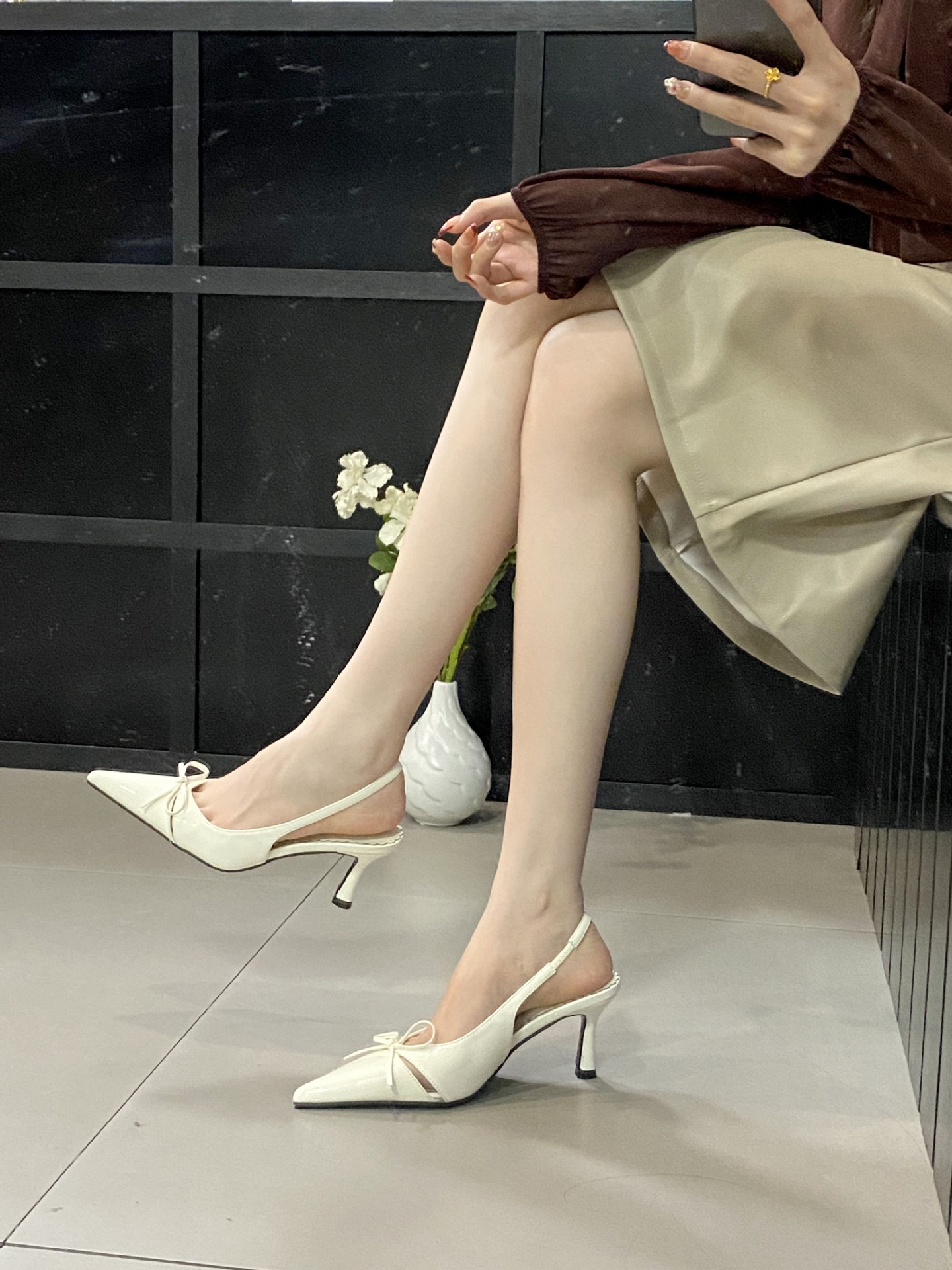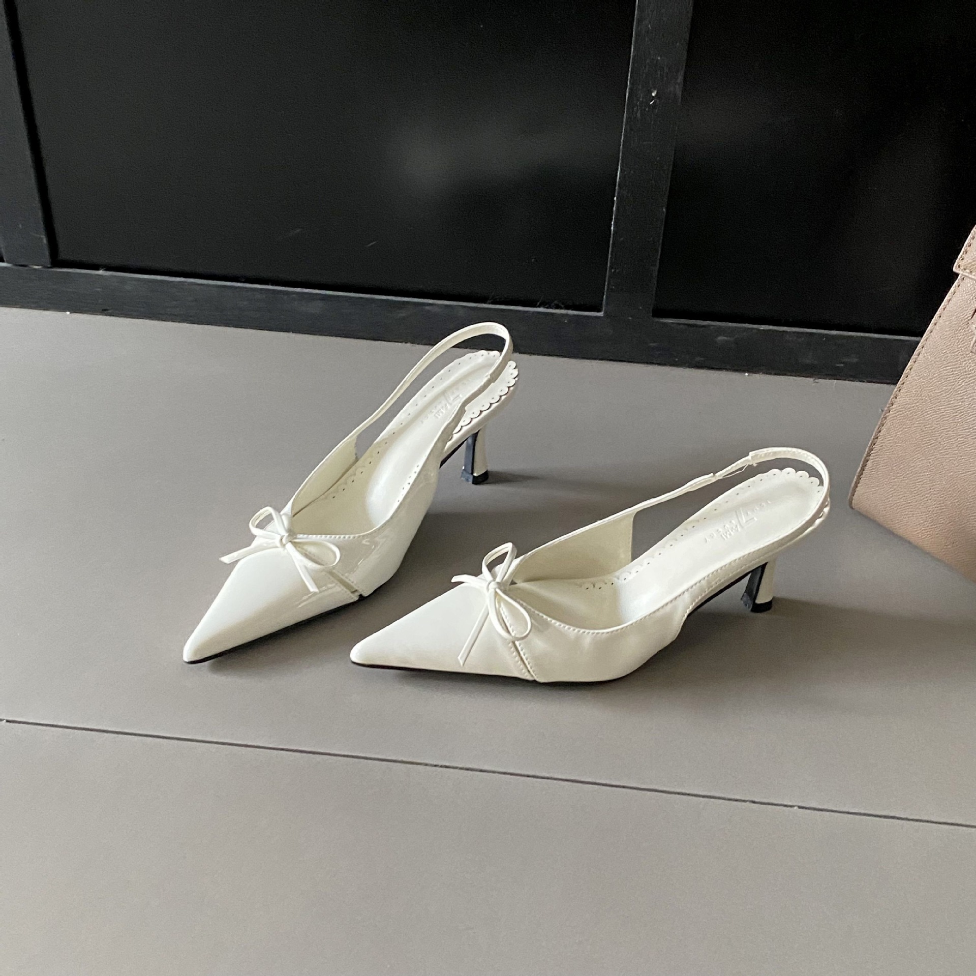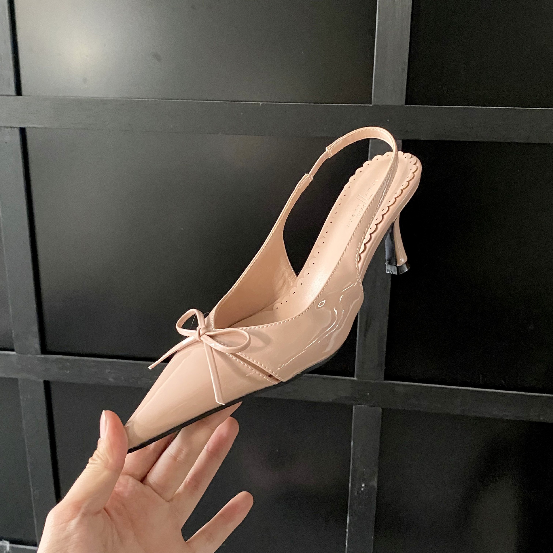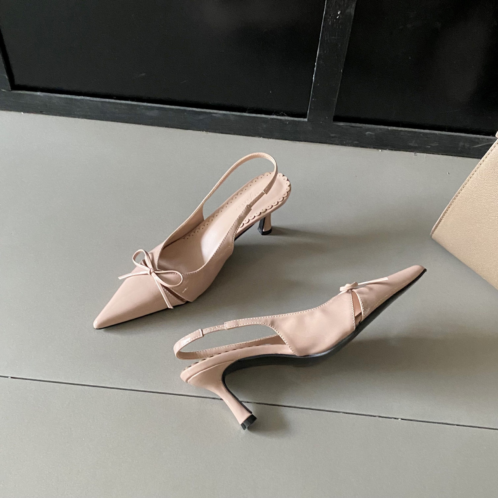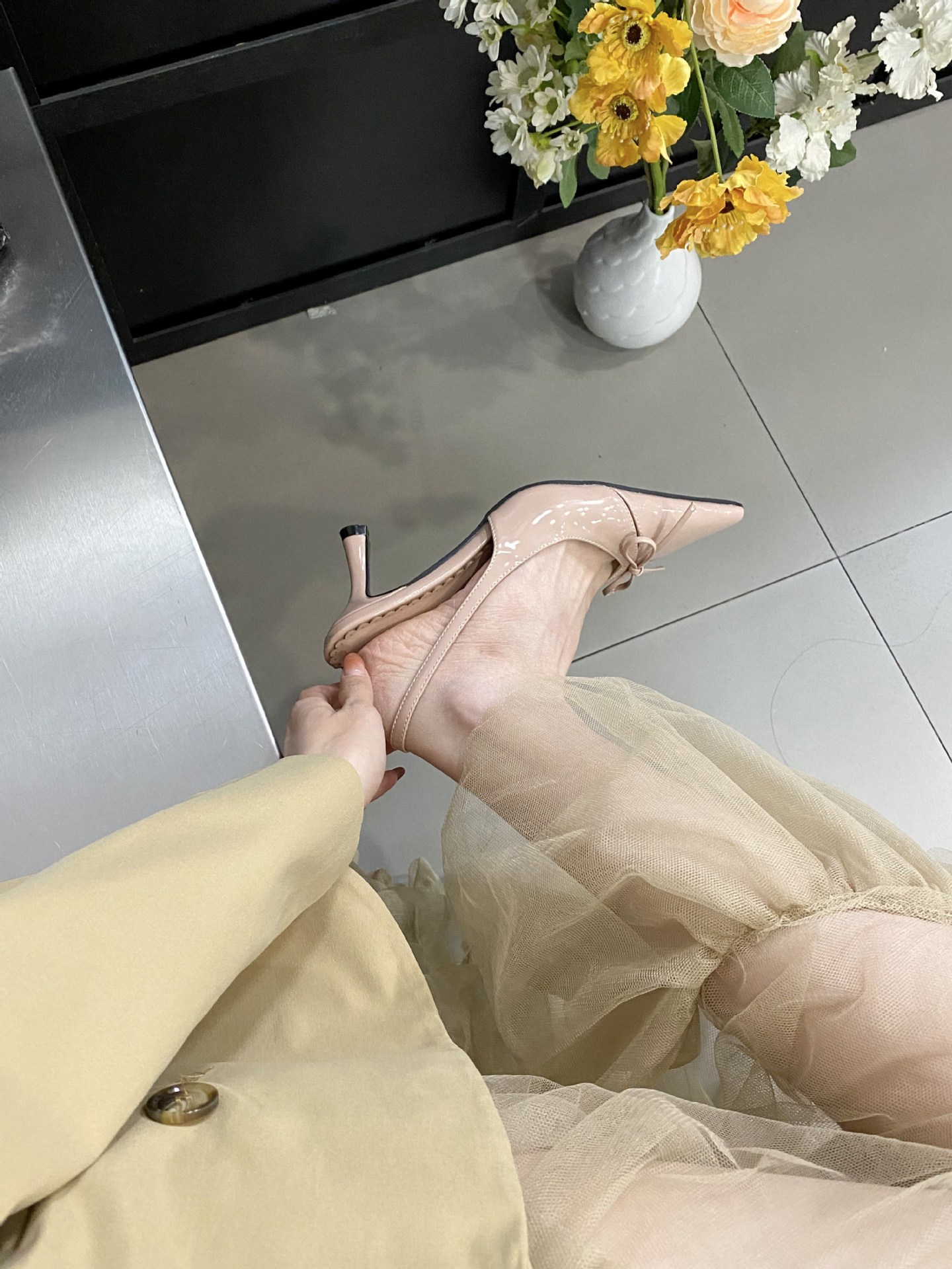 봄 2025 새로운 뾰족한 얇은 굽 하이힐 우아한 슬리밍 프랑스 세련된 감성 아름다운 탑 커버 여성 신발스토어 가기