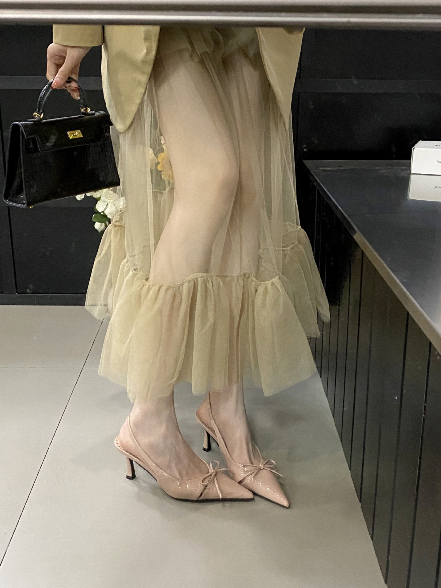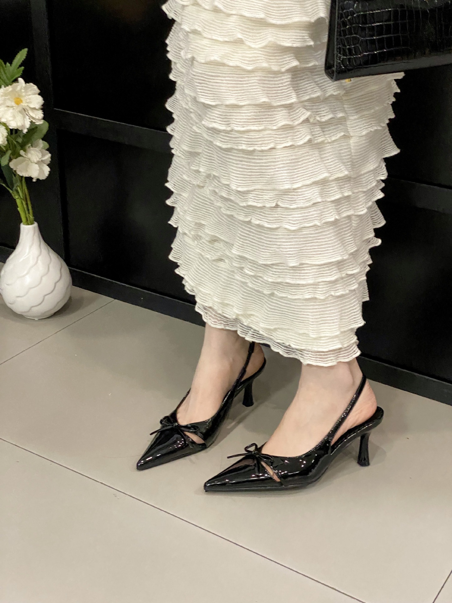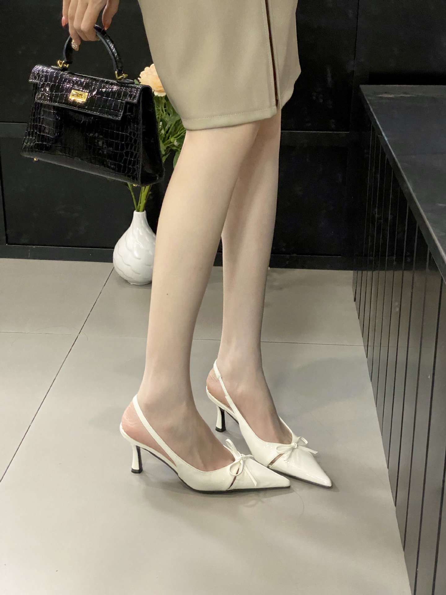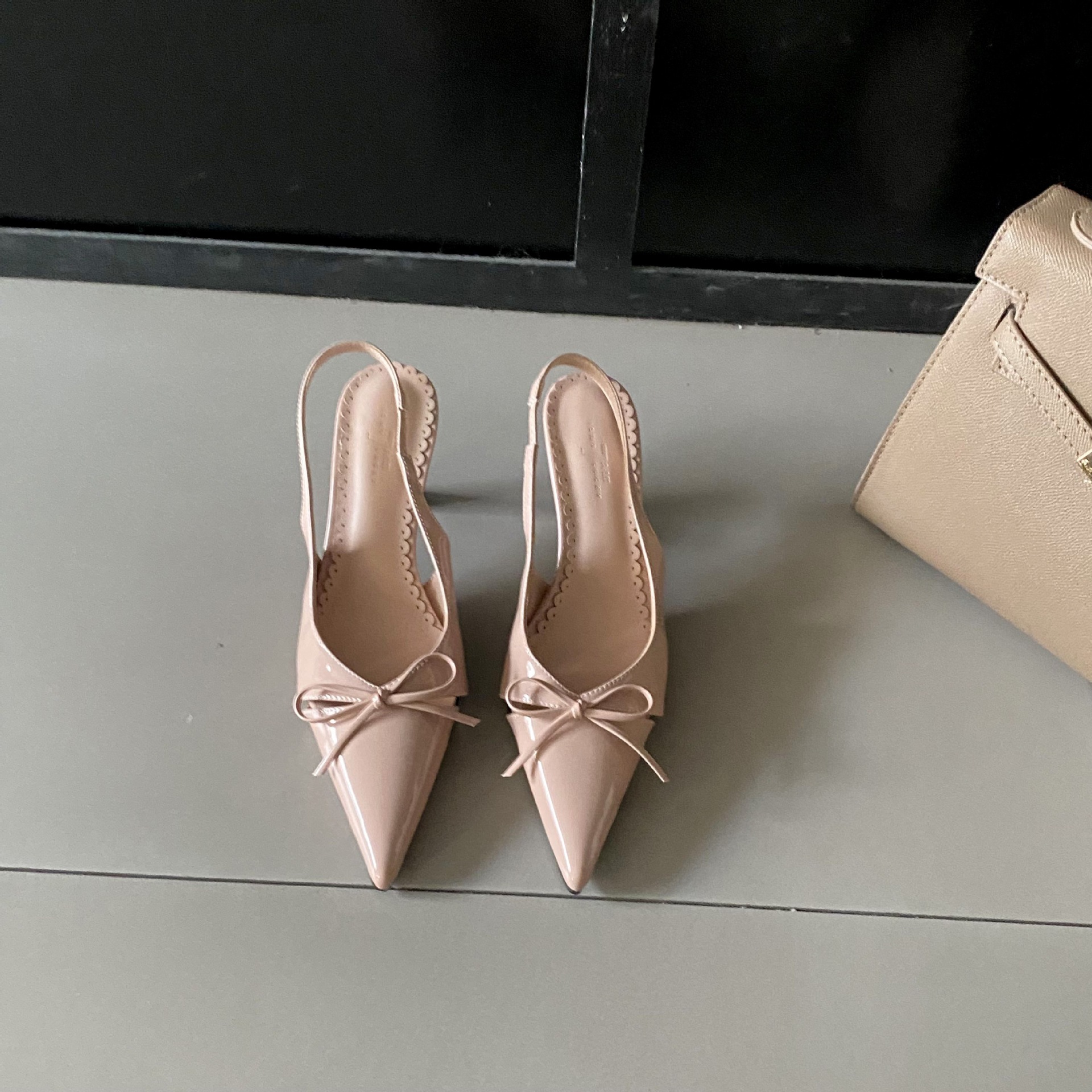 봄 2025 새로운 뾰족한 얇은 굽 하이힐 우아한 슬리밍 프랑스 세련된 감성 아름다운 탑 커버 여성 신발스토어 가기