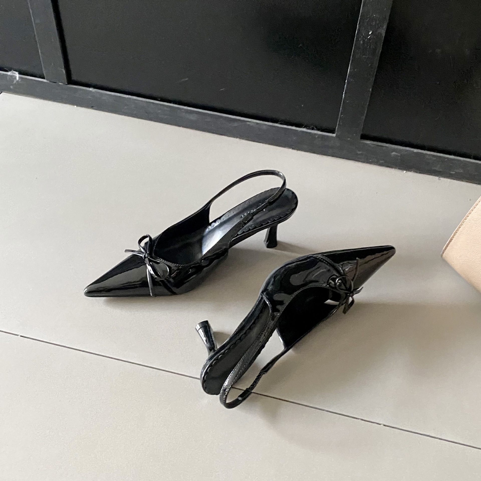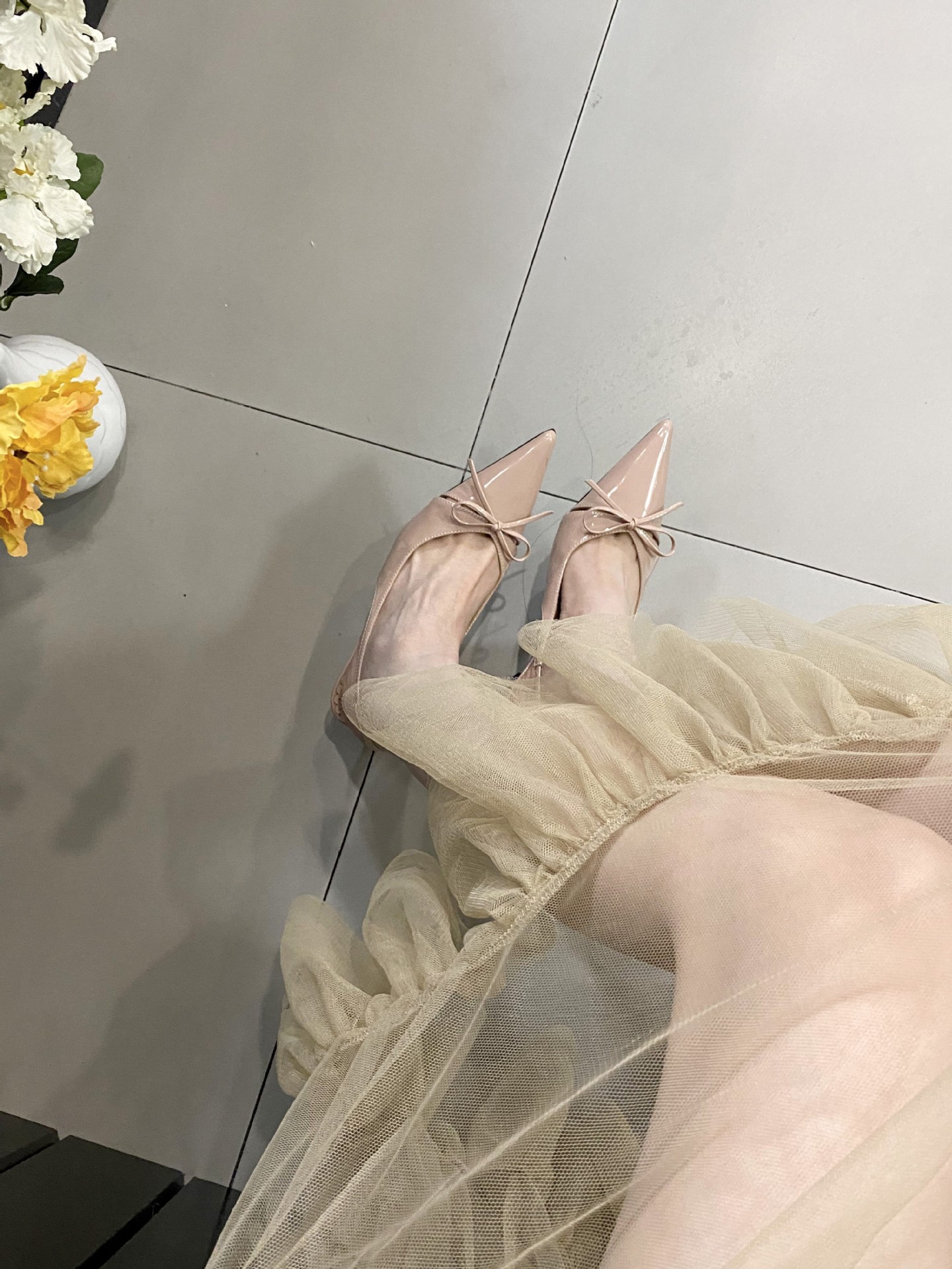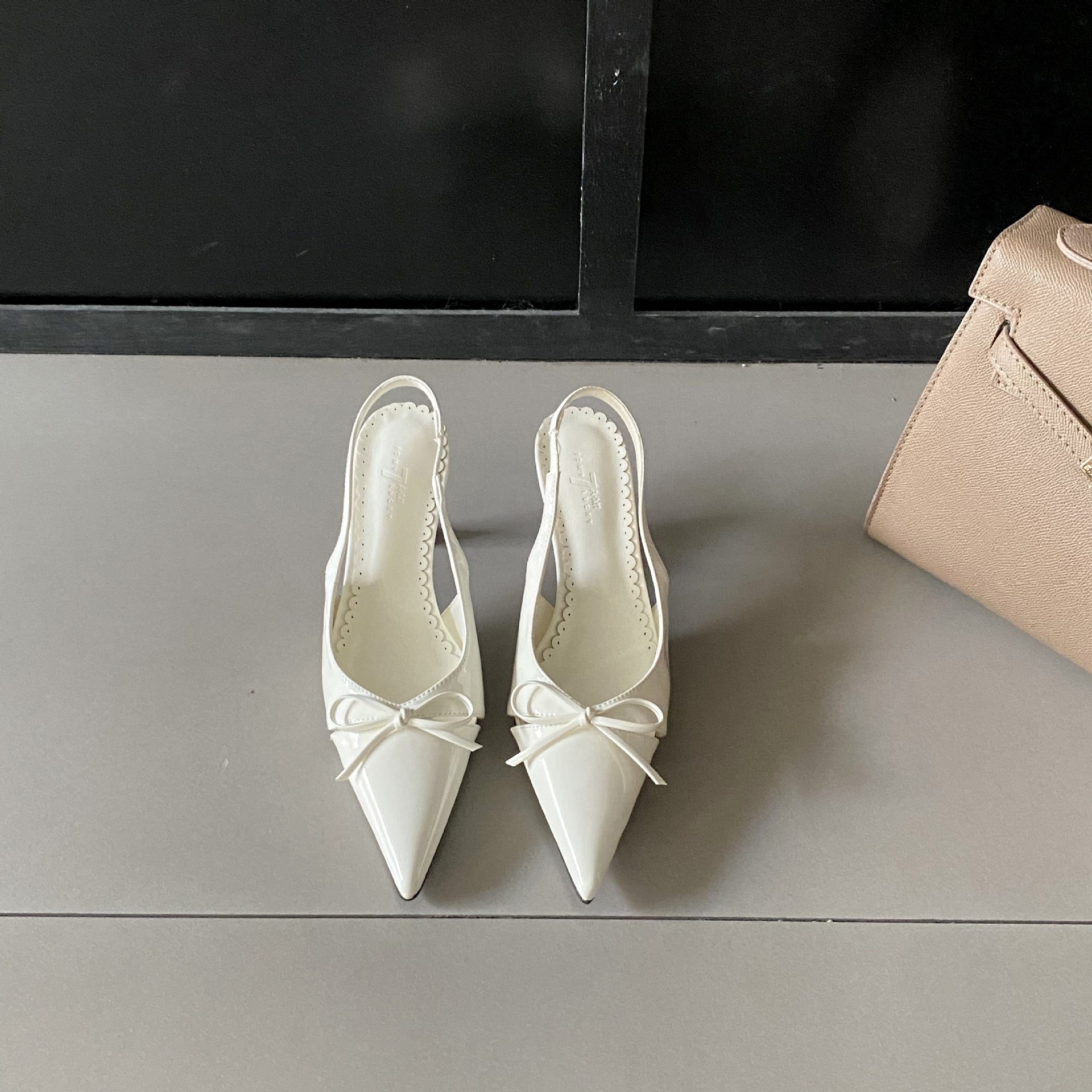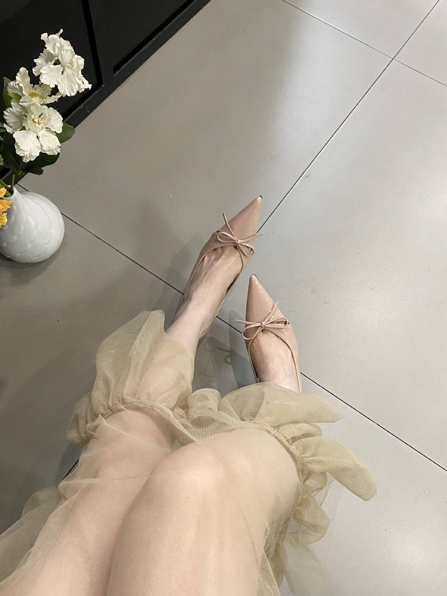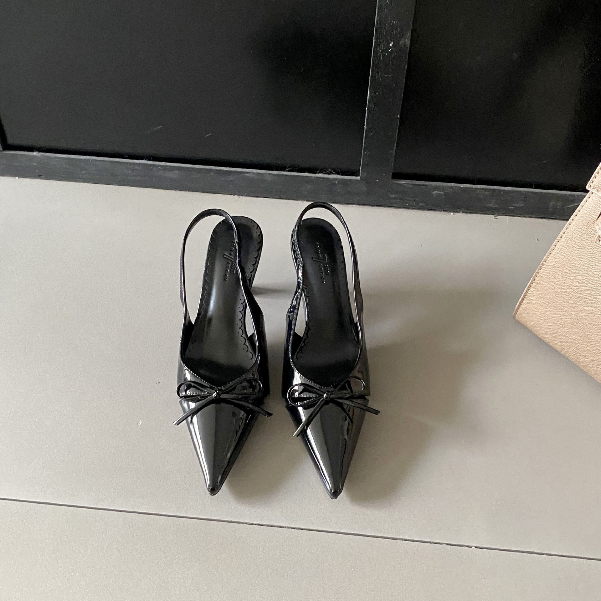 봄 2025 새로운 뾰족한 얇은 굽 하이힐 우아한 슬리밍 프랑스 세련된 감성 아름다운 탑 커버 여성 신발스토어 가기