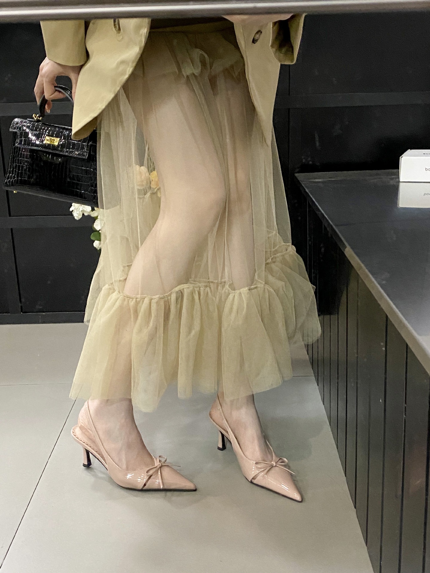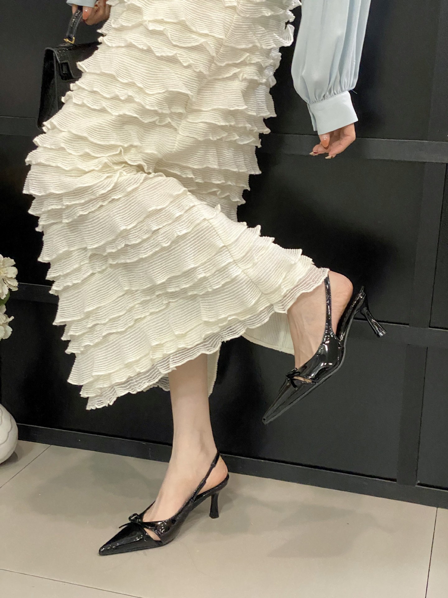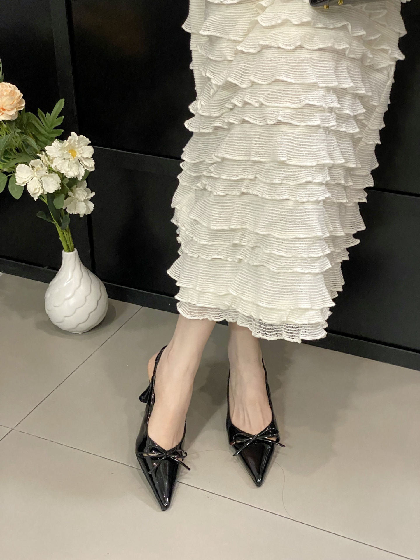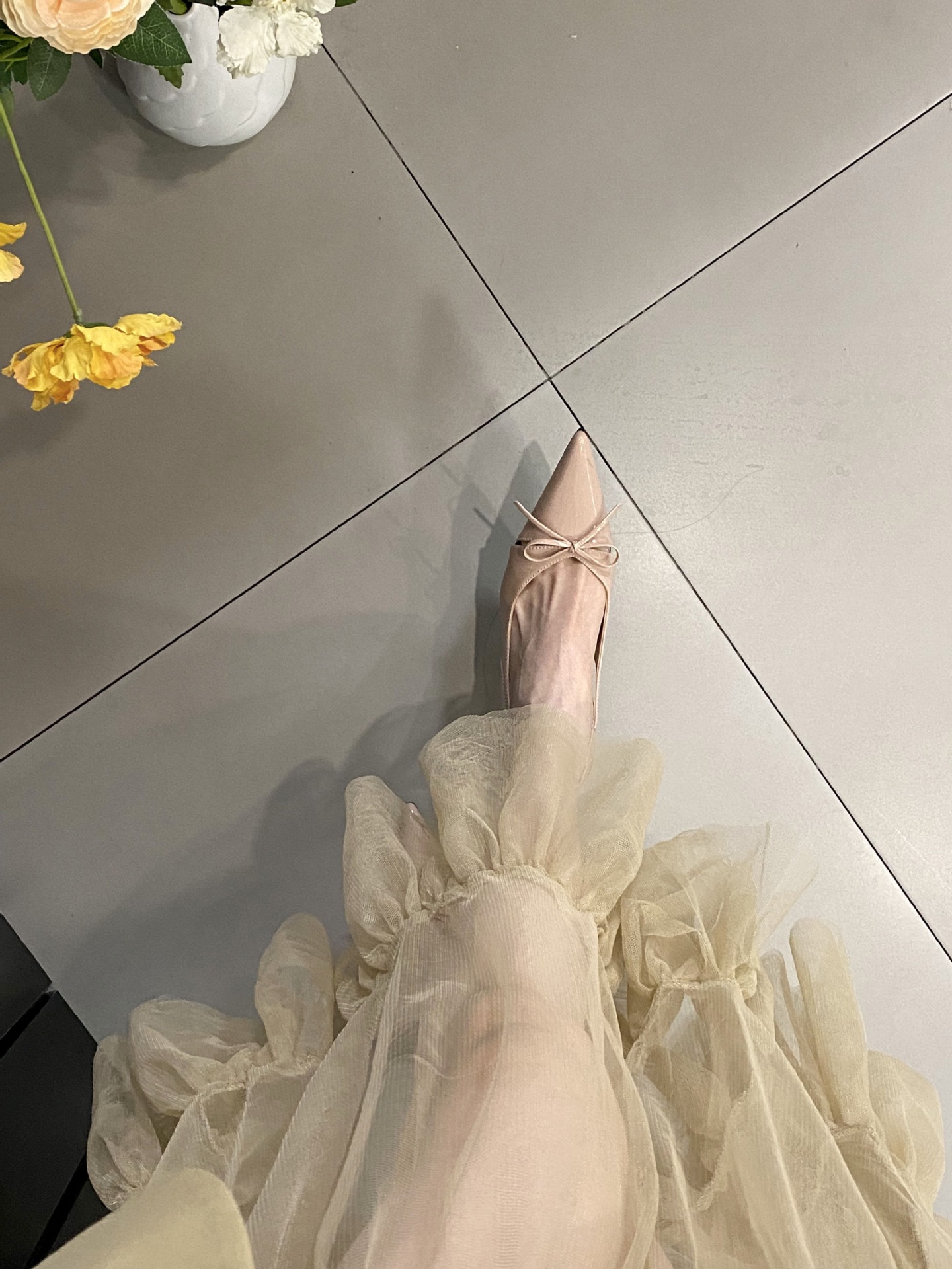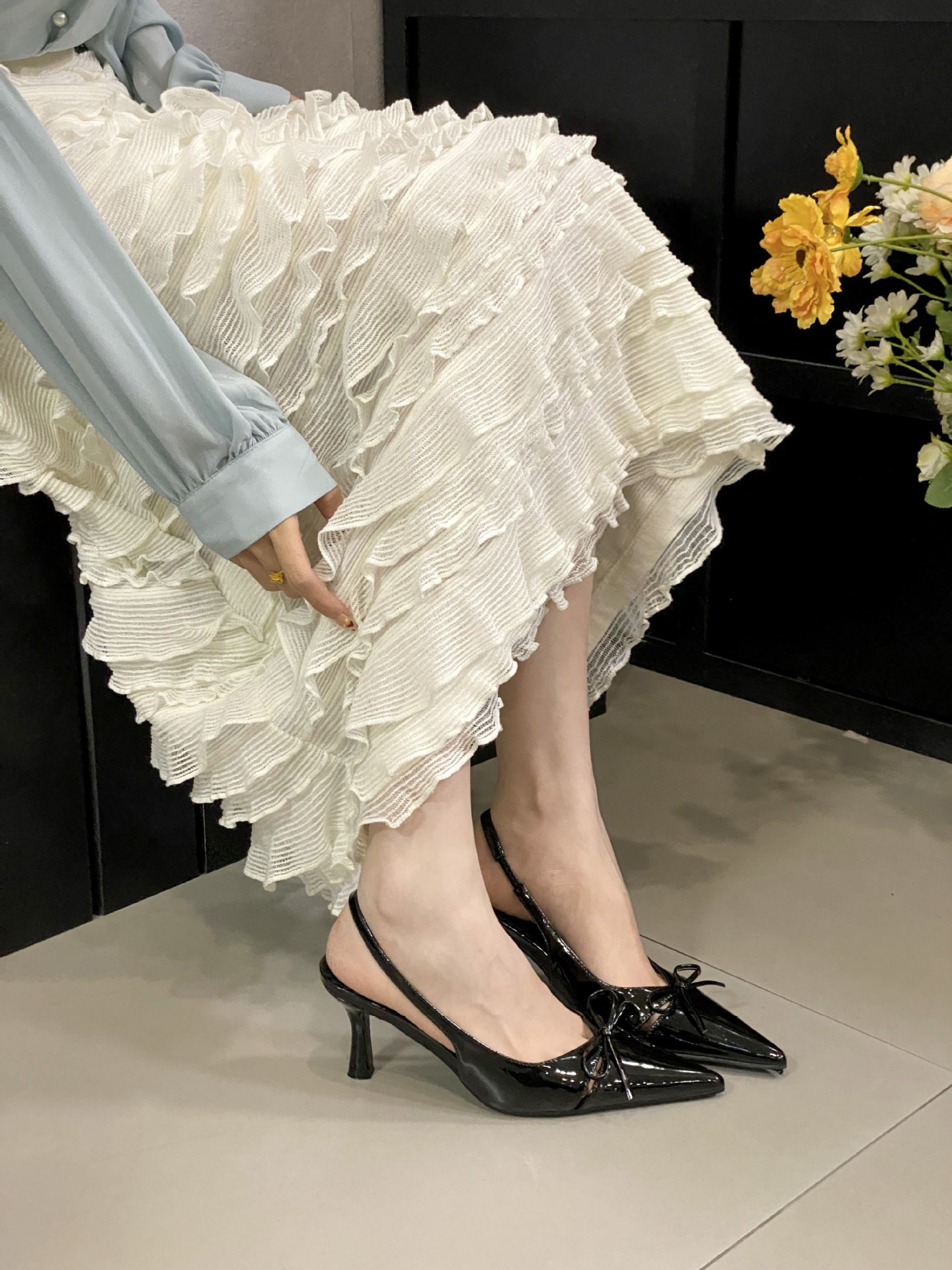 봄 2025 새로운 뾰족한 얇은 굽 하이힐 우아한 슬리밍 프랑스 세련된 감성 아름다운 탑 커버 여성 신발스토어 가기