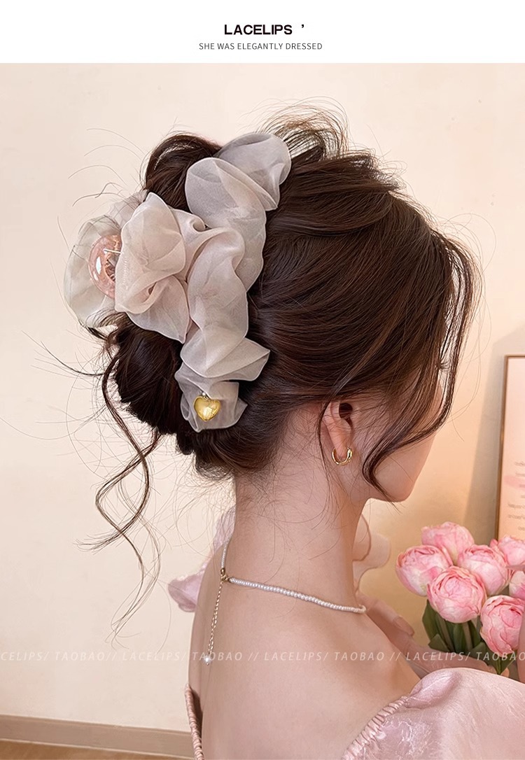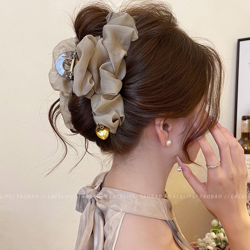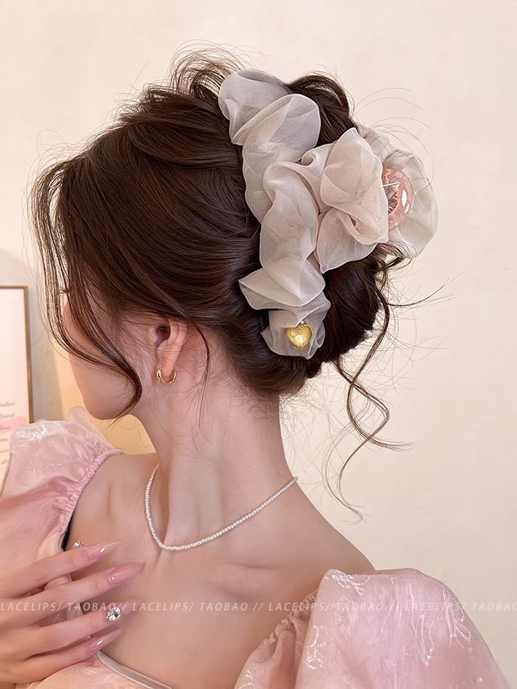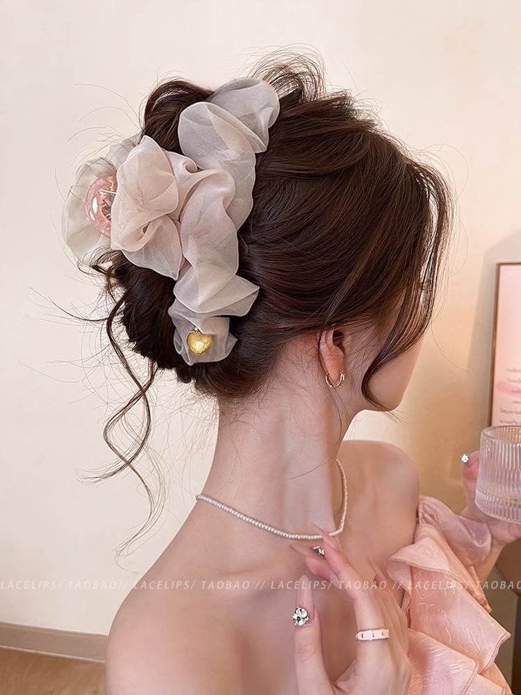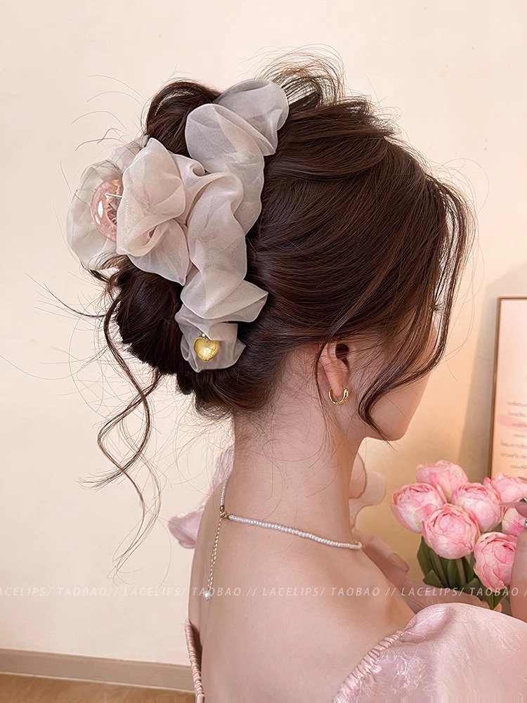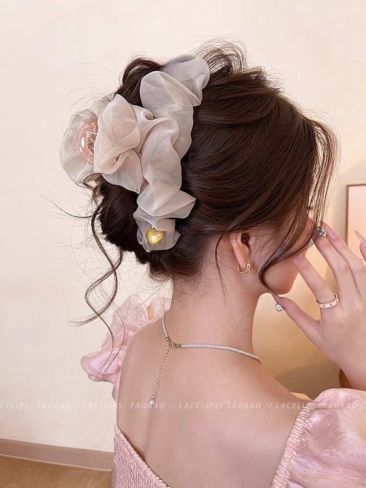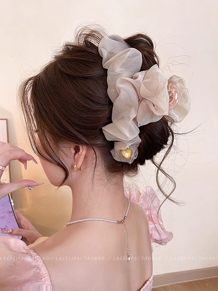 부드러운 주름 메쉬 대형 그랩 클립 여성의 2025 새로운 하이 엔드 스프링 헤어핀 백 헤드 상어 클립 헤드웨어
