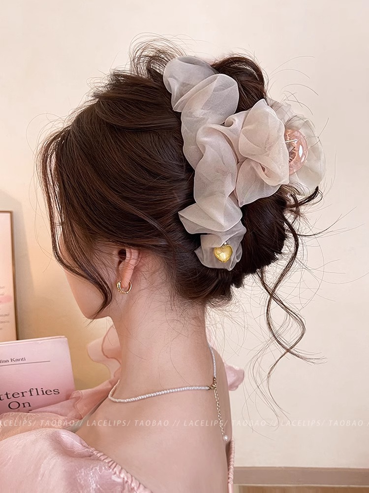 부드러운 주름 메쉬 대형 그랩 클립 여성의 2025 새로운 하이 엔드 스프링 헤어핀 백 헤드 상어 클립 헤드웨어스토어 가기