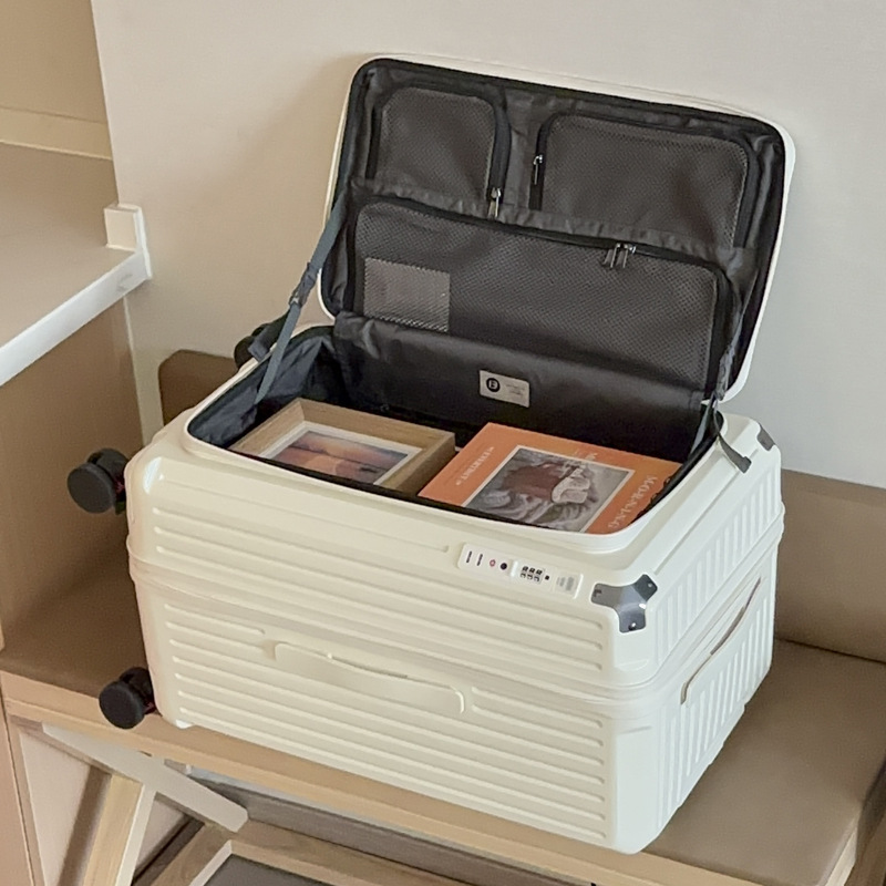 사이드 오픈 커버 5 륜 두꺼운 트롤리 케이스, 대용량 수하물 케이스 확대 여성 20 인치 조용한 여행 등록 상자 남성스토어 가기