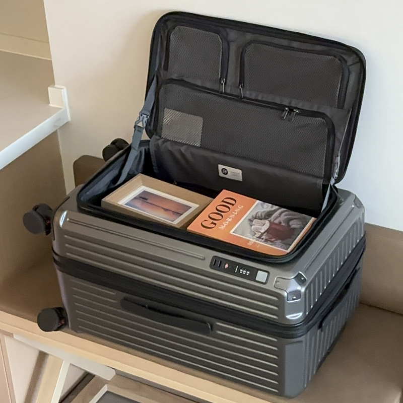 사이드 오픈 커버 5 륜 두꺼운 트롤리 케이스, 대용량 수하물 케이스 확대 여성 20 인치 조용한 여행 등록 상자 남성