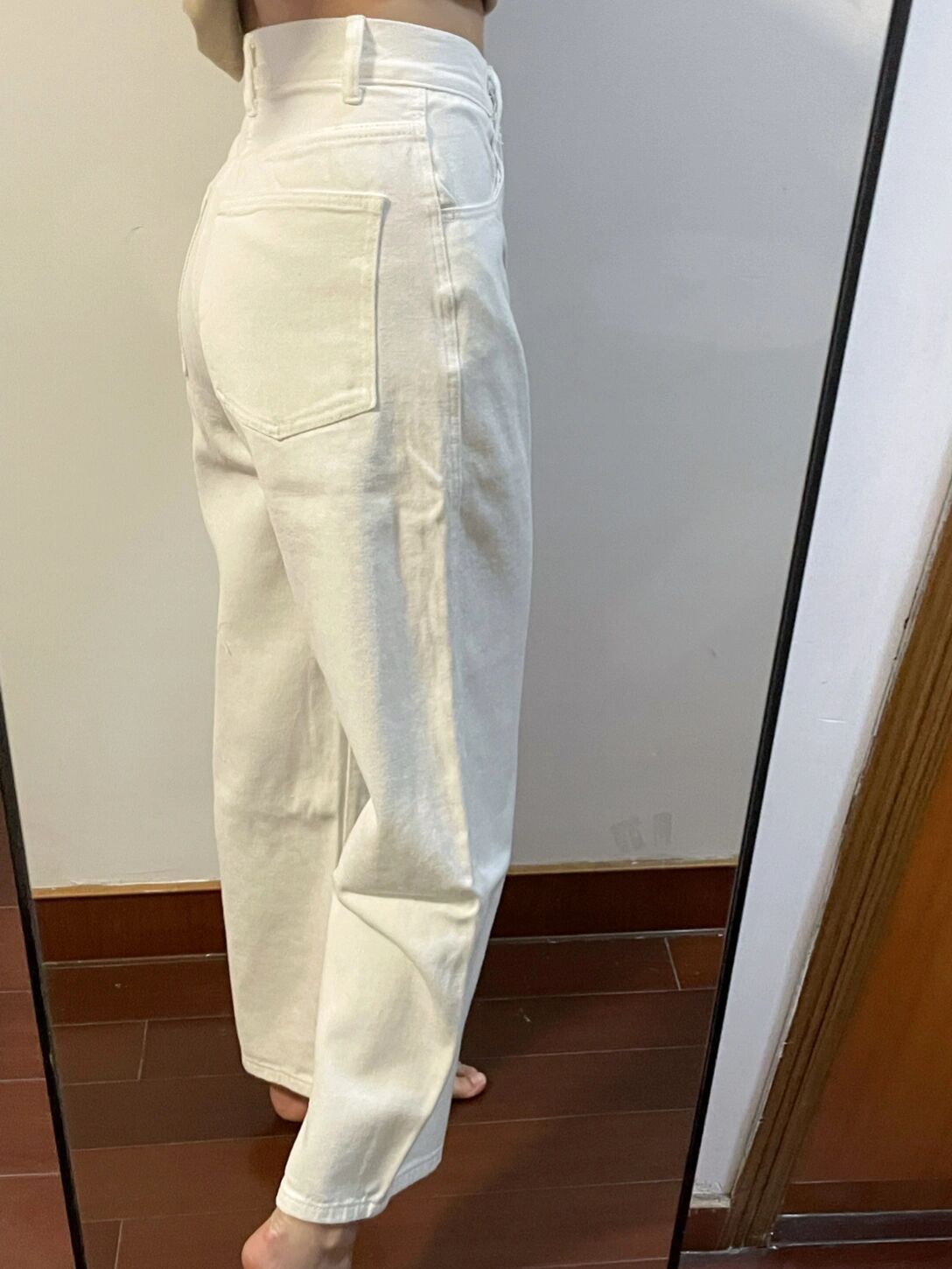 화이트 스트레이트-다리 청바지 여성용 2025 년 봄 새로운 슬림 핏 바지 좁은 미국 하이 스트리트 와이드 레그 바지스토어 가기