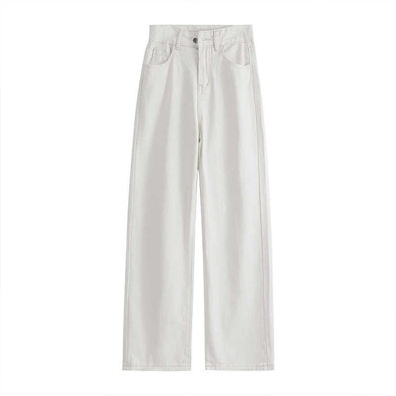 화이트 스트레이트-다리 청바지 여성용 2025 년 봄 새로운 슬림 핏 바지 좁은 미국 하이 스트리트 와이드 레그 바지