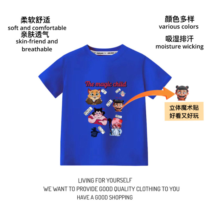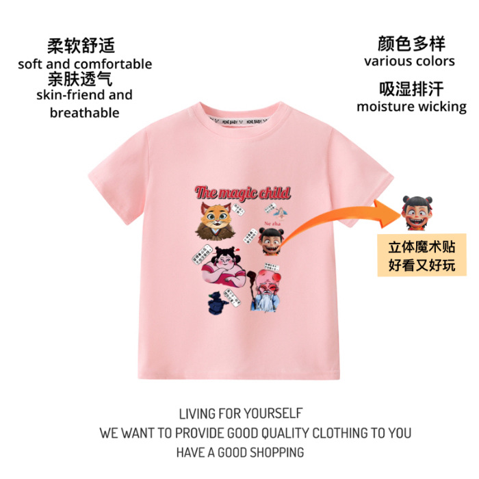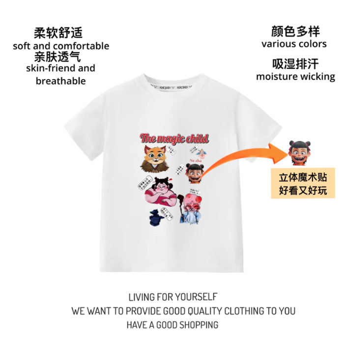 100% 순수 코튼 재미 3 차원 벨크로 어느 크루 넥 짧은 소매 T 귀여운 공 바오시 지 황후