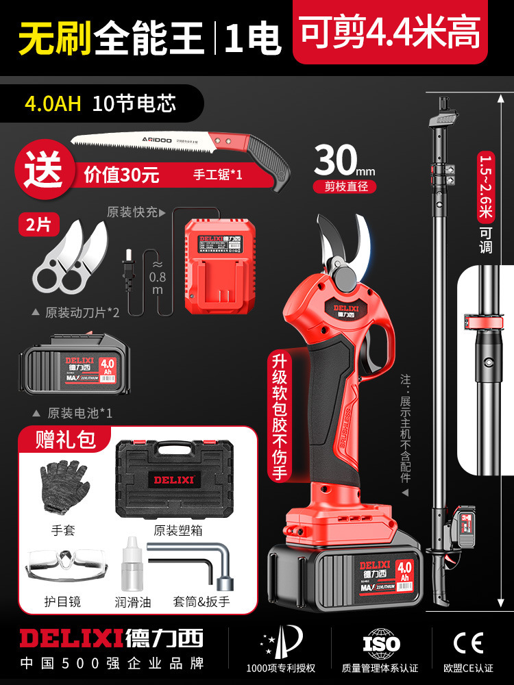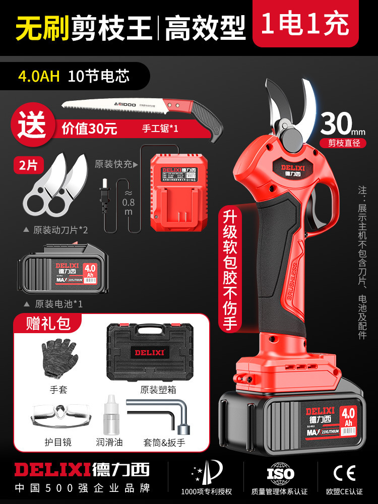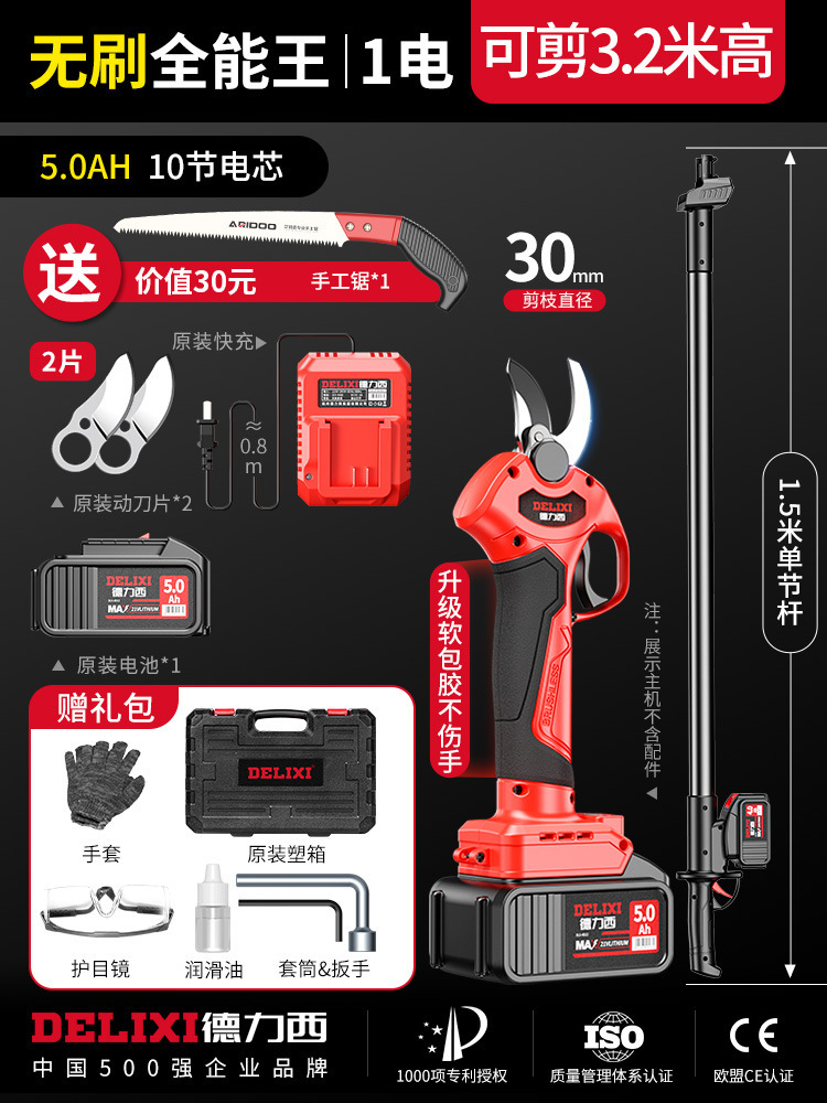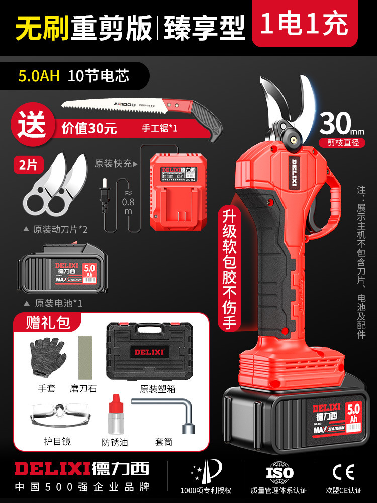 Delixi 리튬 전기 가위 충전식 가지 가지 치기 과일 나무 원예 가위 가지 치기 가지 치기