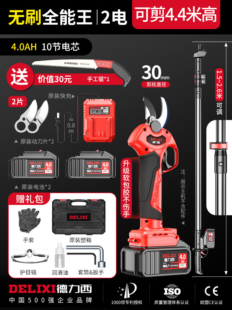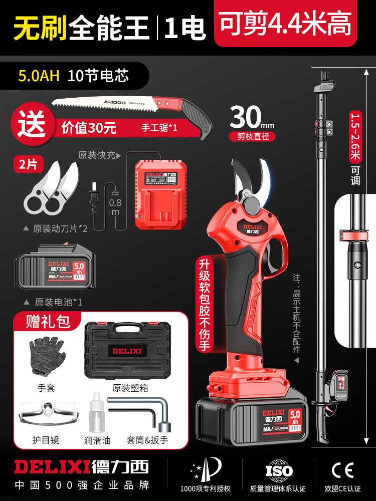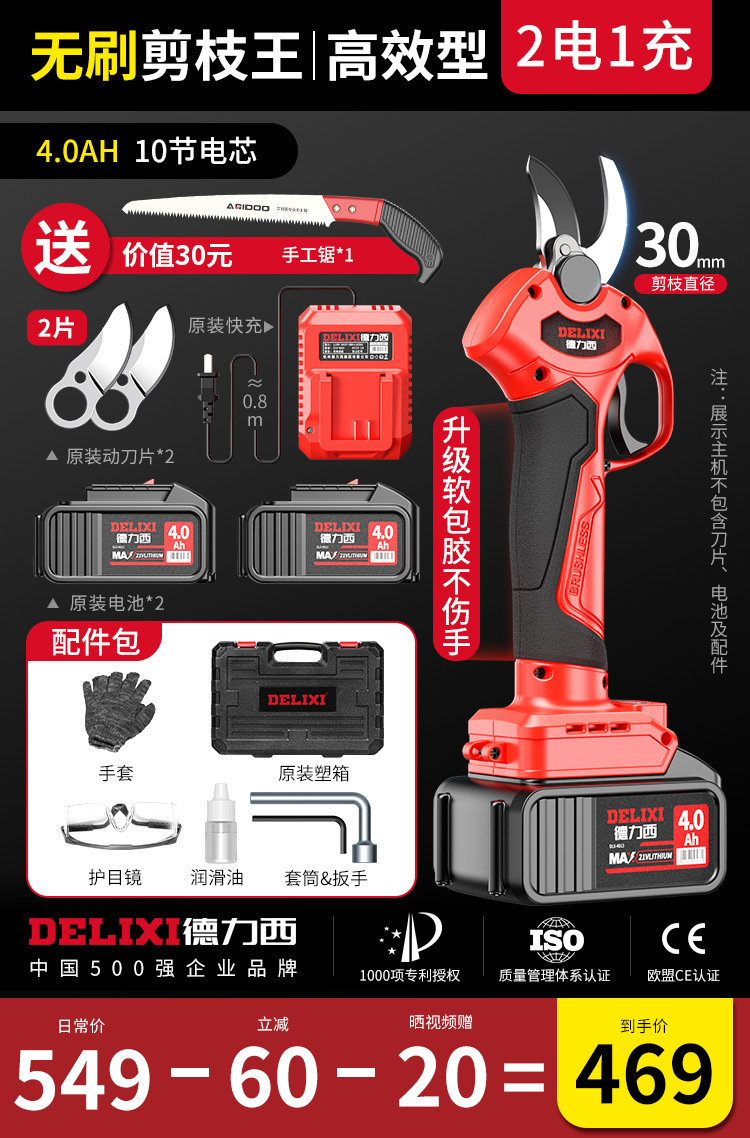 Delixi 리튬 전기 가위 충전식 가지 가지 치기 과일 나무 원예 가위 가지 치기 가지 치기스토어 가기