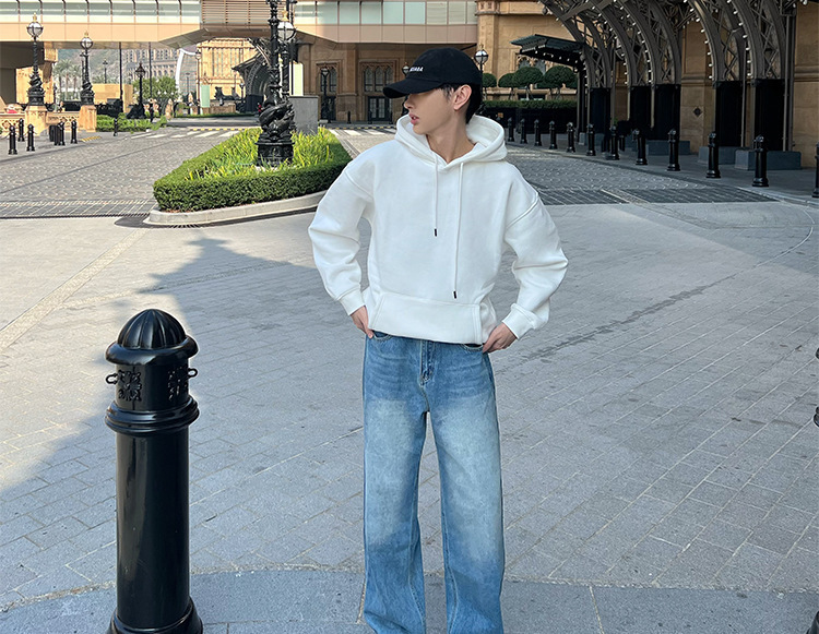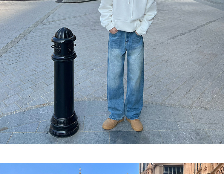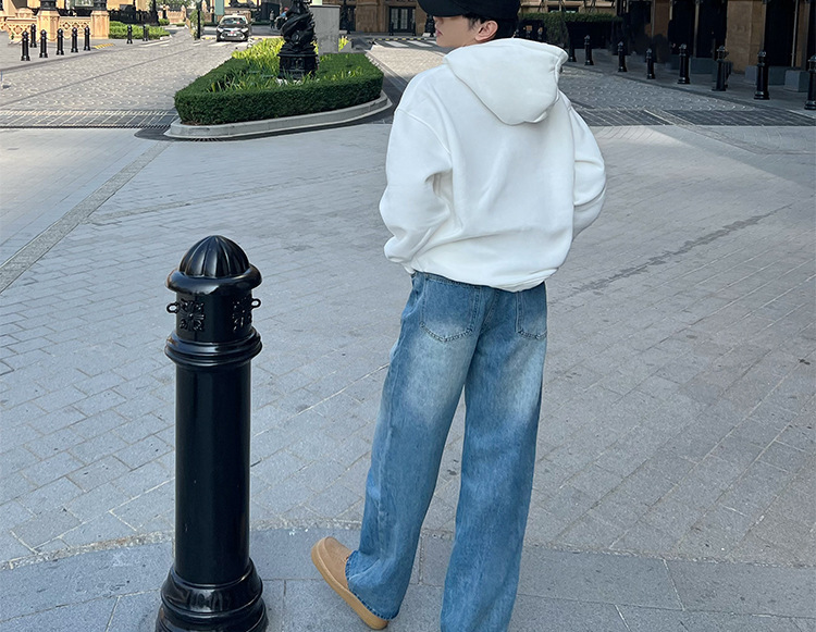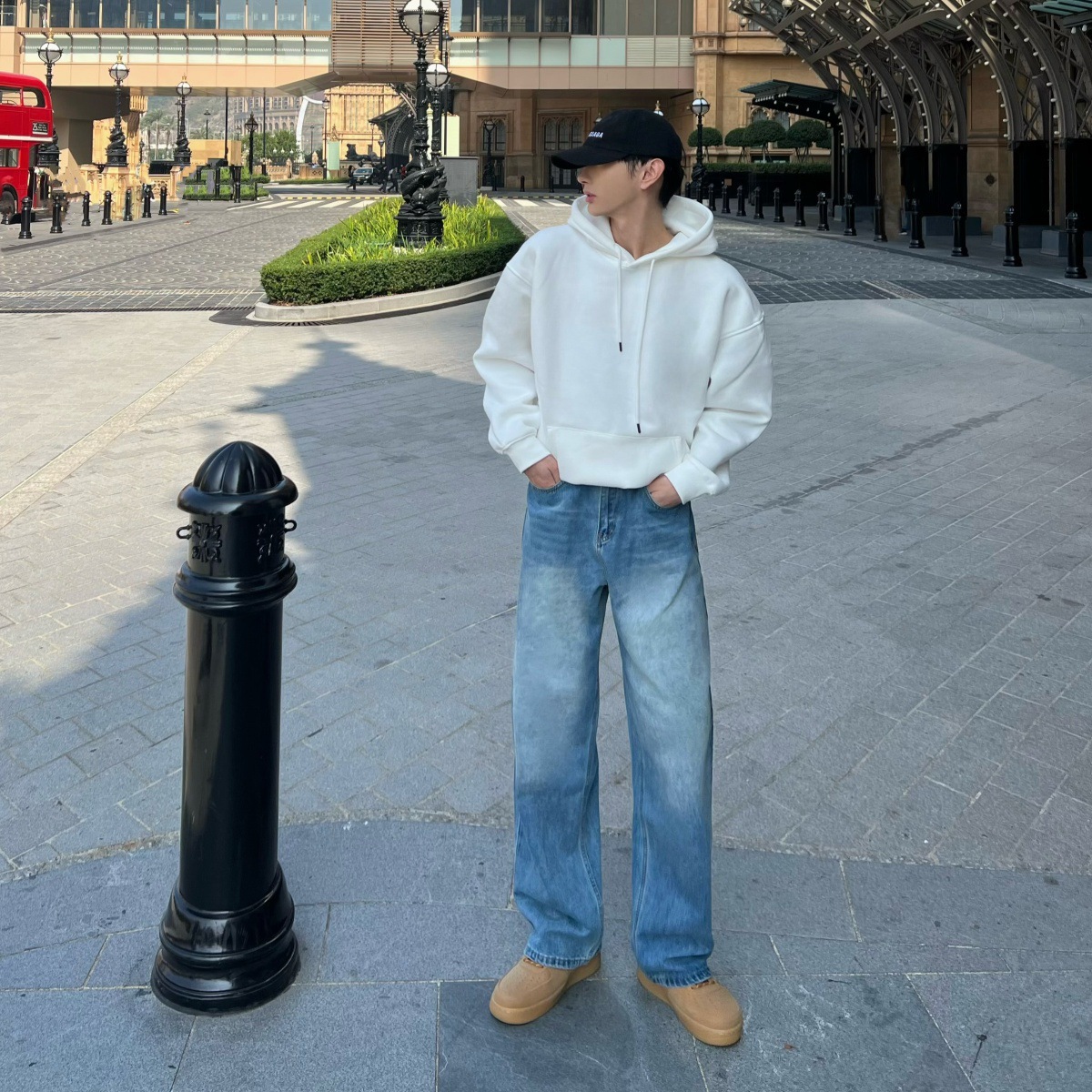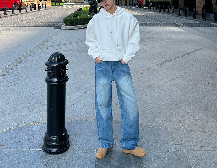 2025 한국 스타일 세탁 청바지 남자 느슨한 슬림 스트레이트 레그 와이드 레그 팬츠 남자 올 매치 그라디언트 바지 남자 트렌디스토어 가기