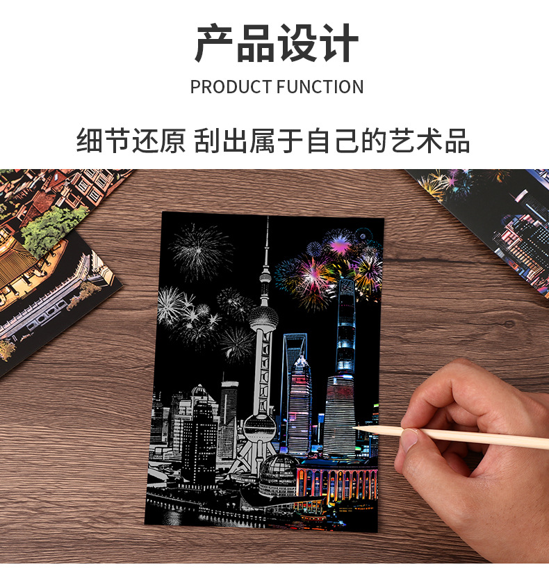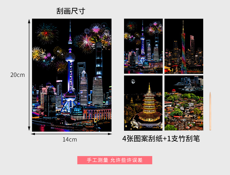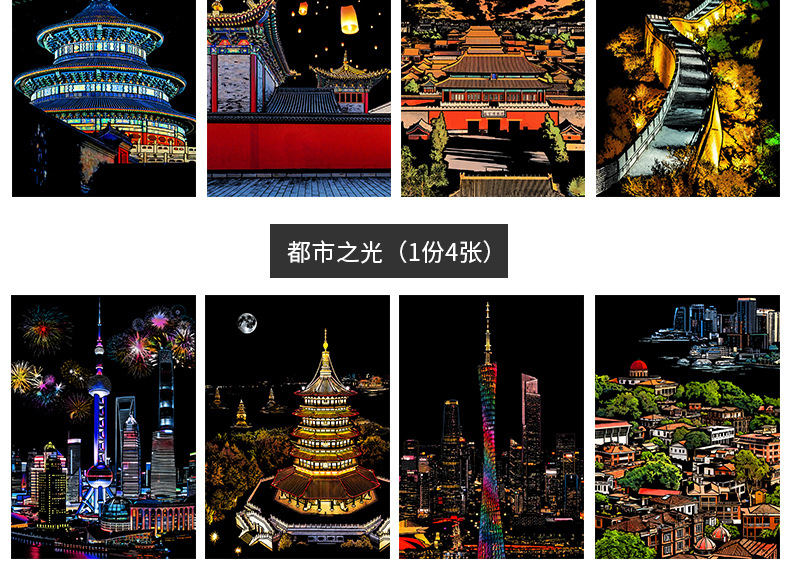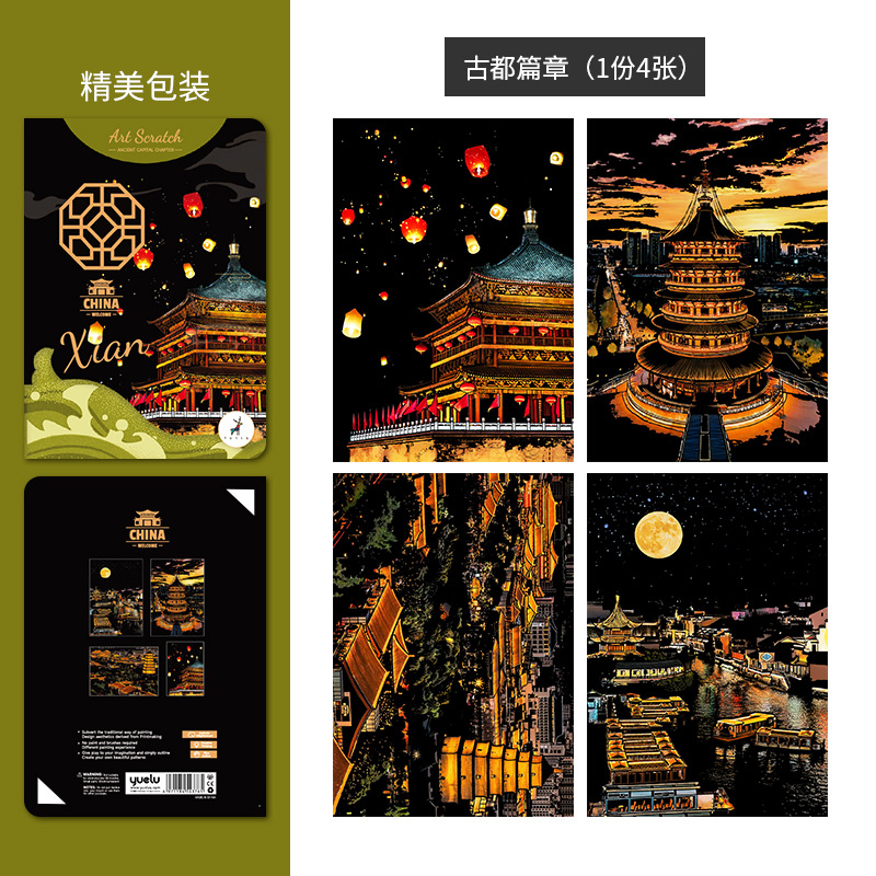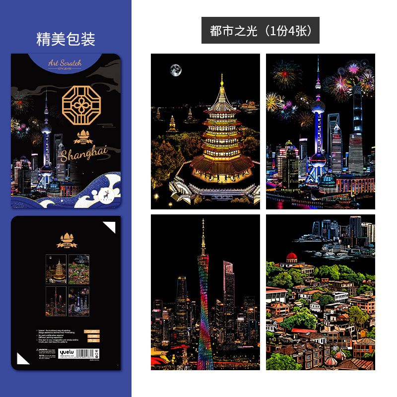 -도시 밤 긁힌 그림 국내 고전 랜드 마크 건물 긁힌 그림 학생 창조적 인 장난감 펀치 카드 긁힘 그림스토어 가기