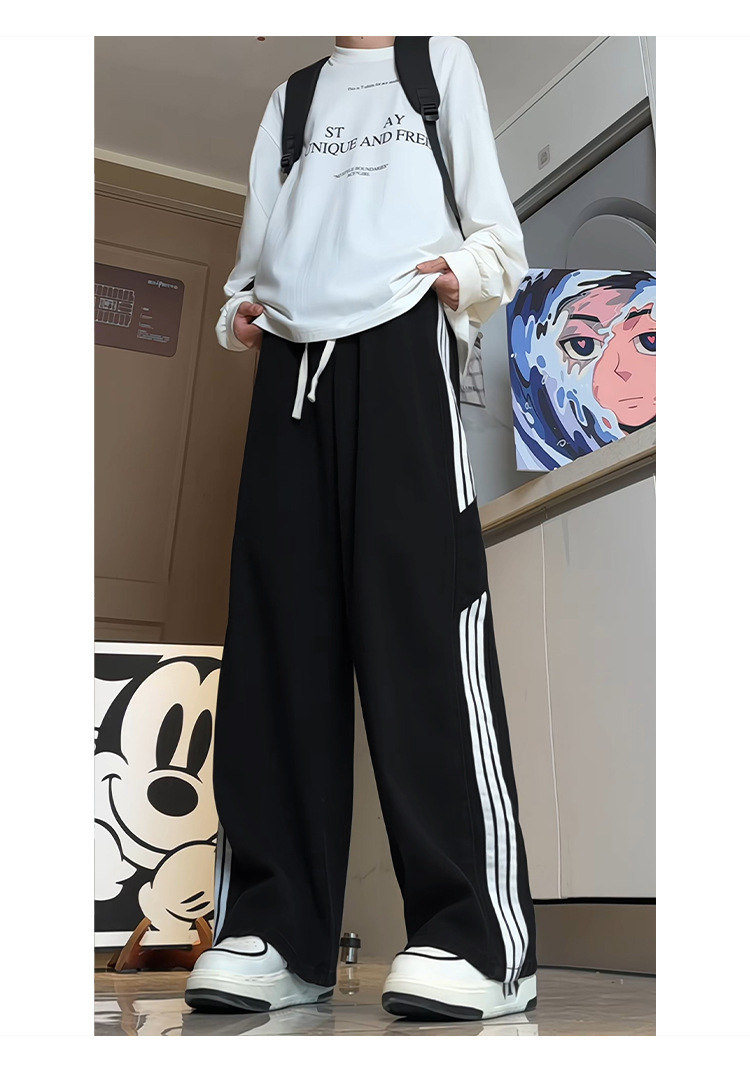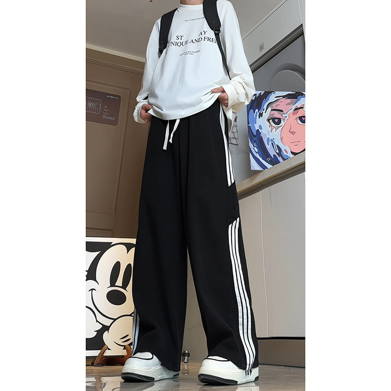 미국식 3 바 스트라이프 청바지 남성용 틈새 디자인 감각 하이 스트리트 분위기 바지 스트레이트 느슨한 넓은 다리 바지