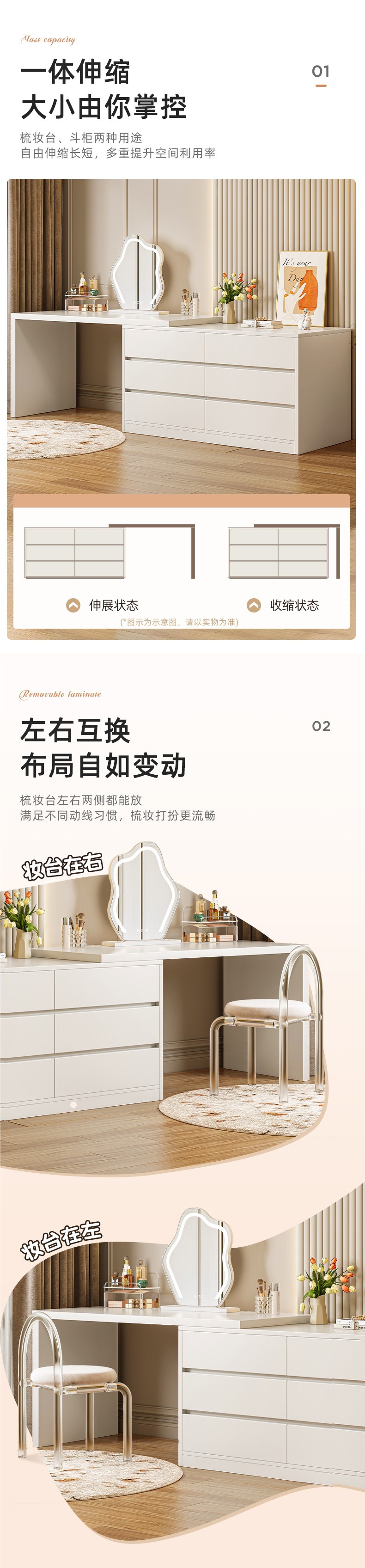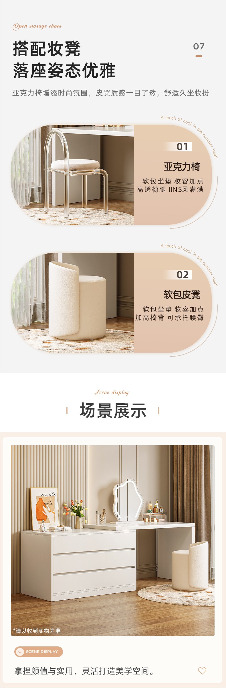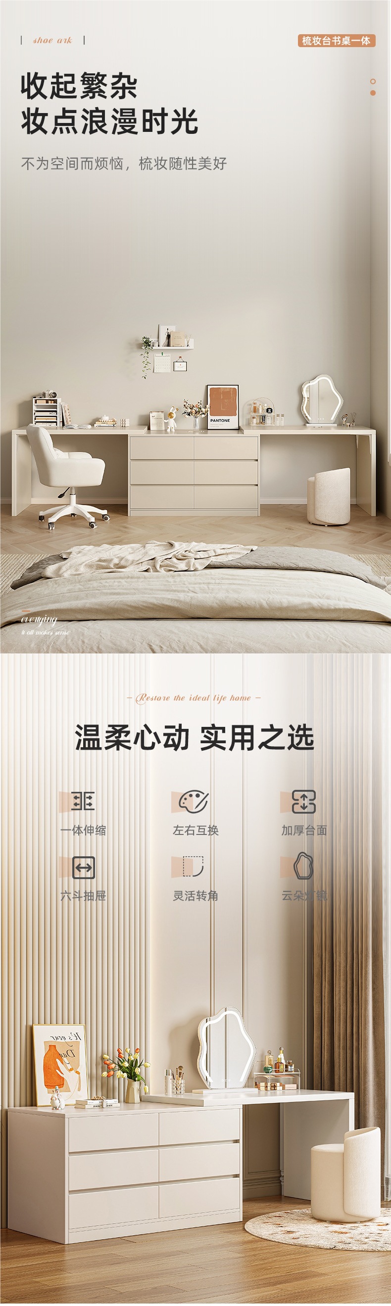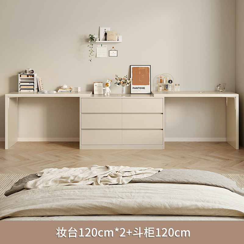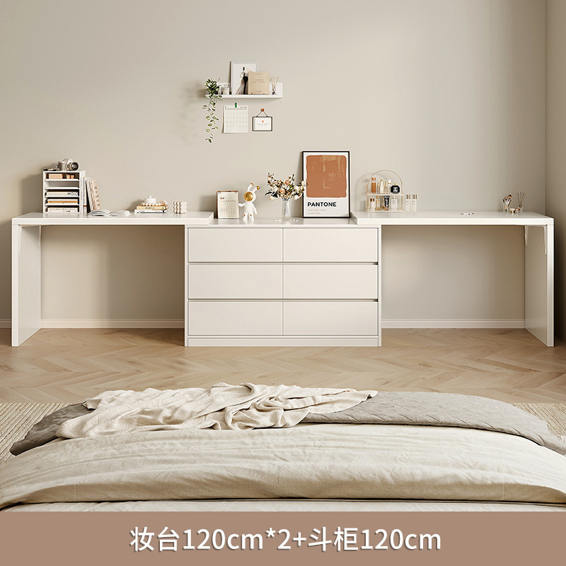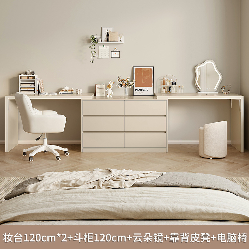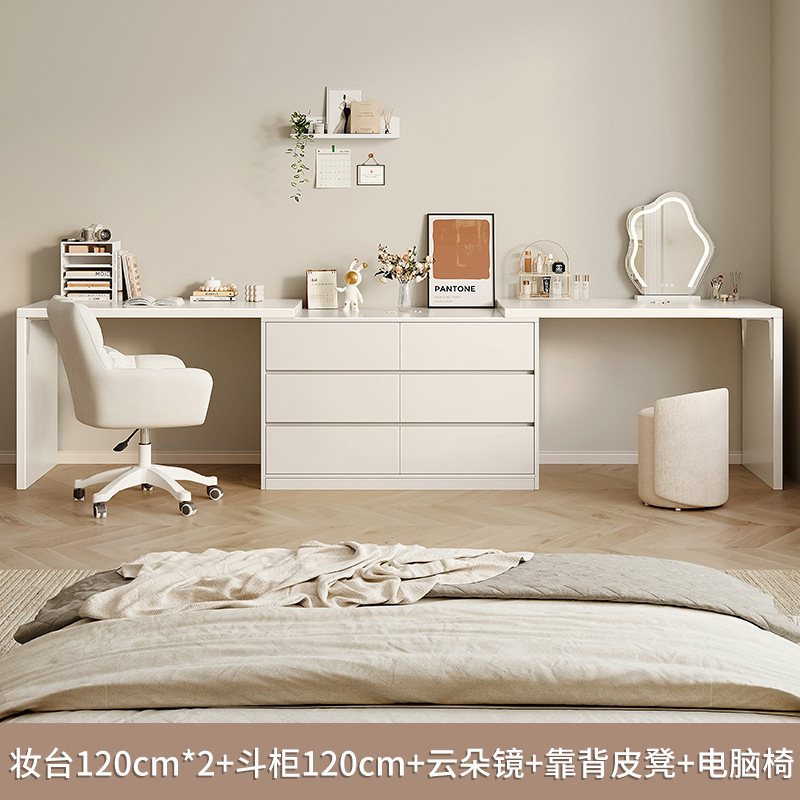 • + 크로스보더 + [메인사진] 120cm 테이블 × 2 + 120 캐비닛 + 구름거울 + 가죽 스툴 + 컴퓨터 의자 크림 화이트