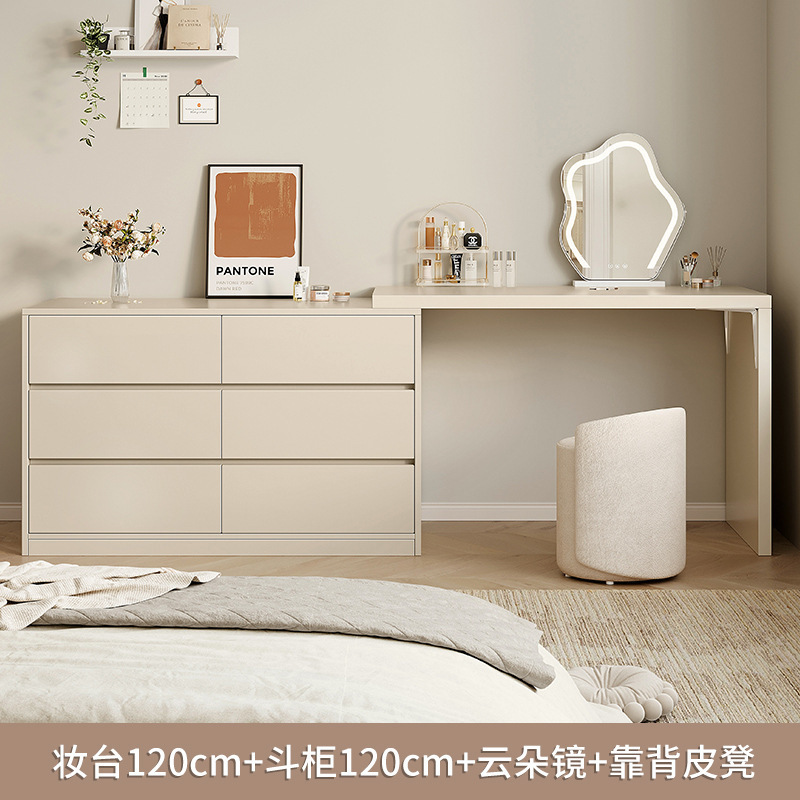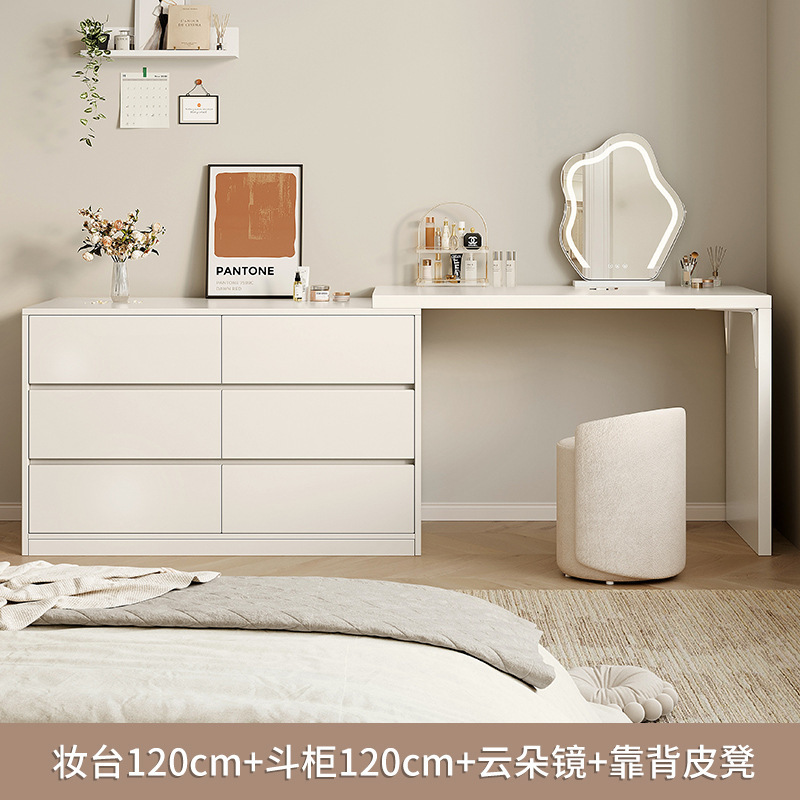 • + 크로스보더 + [구름거울 + 가죽 스툴 조합] 120cm 테이블 + 120cm 6단 서랍장 크림 스타일