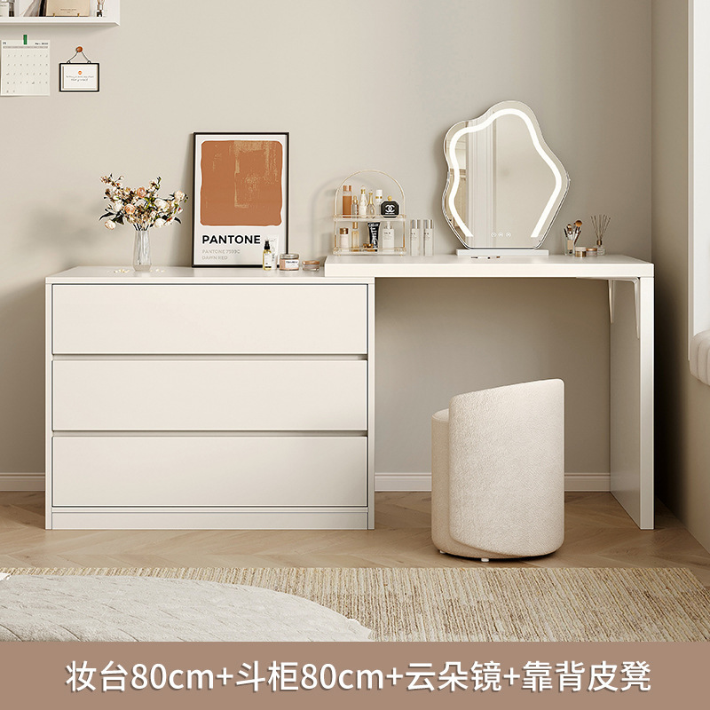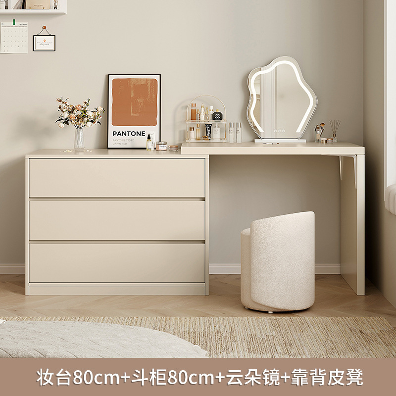 • + 크로스보더 + [구름거울 + 가죽스툴 조합] 80cm 테이블 + 80cm 3단 서랍장 크림스타일