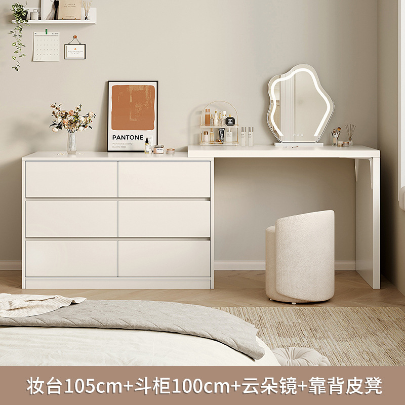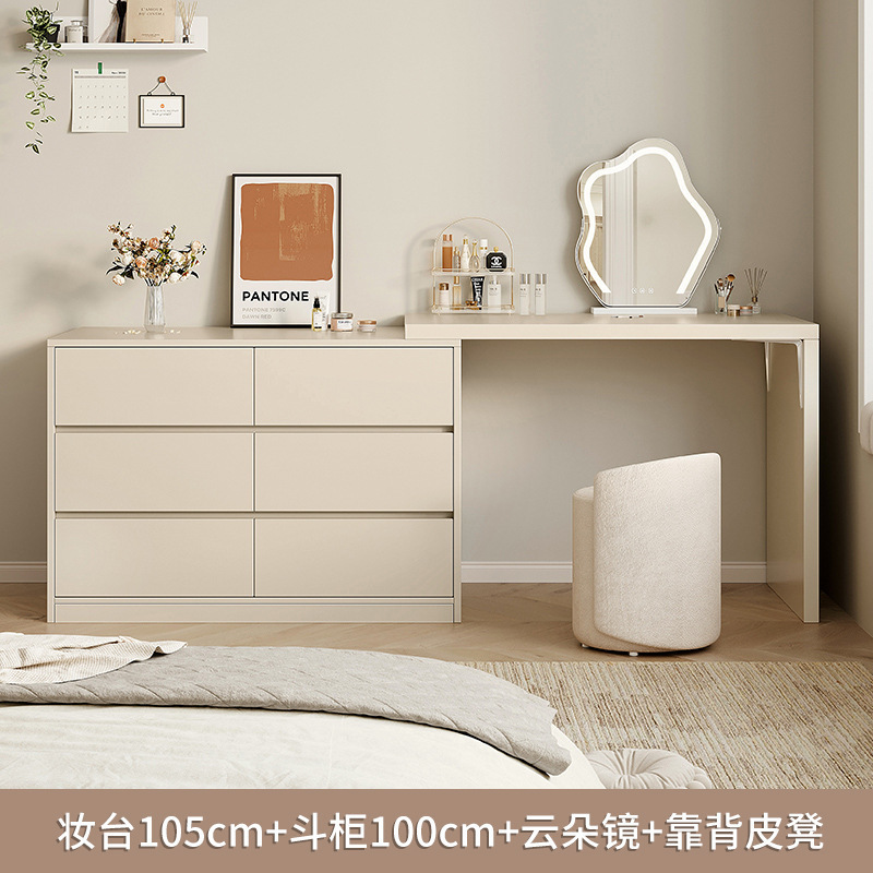 • + 크로스보더 + [구름거울 + 가죽스툴 조합] 105cm 테이블 + 100cm 6단 서랍장 크림스타일