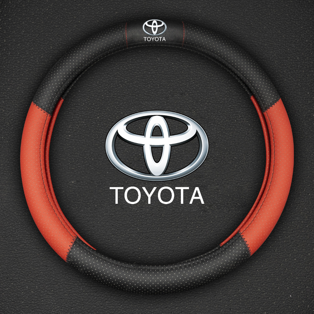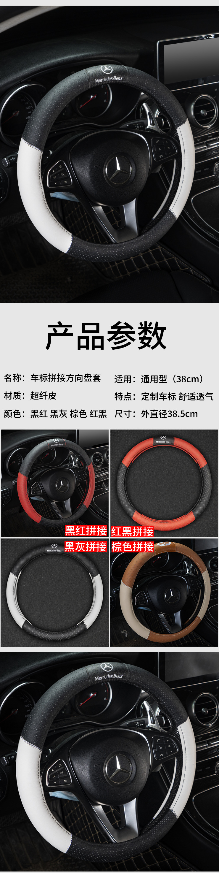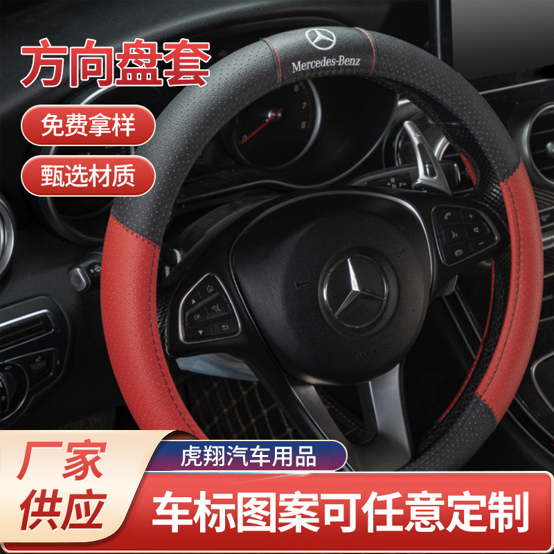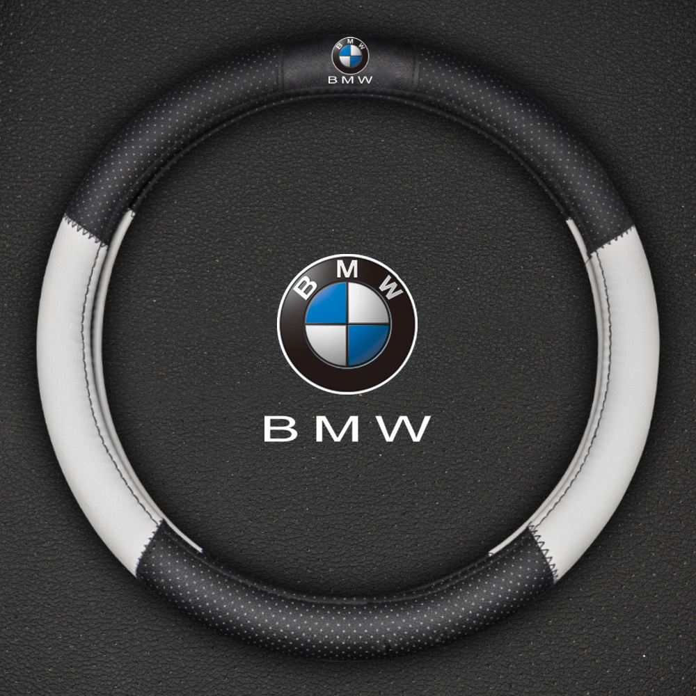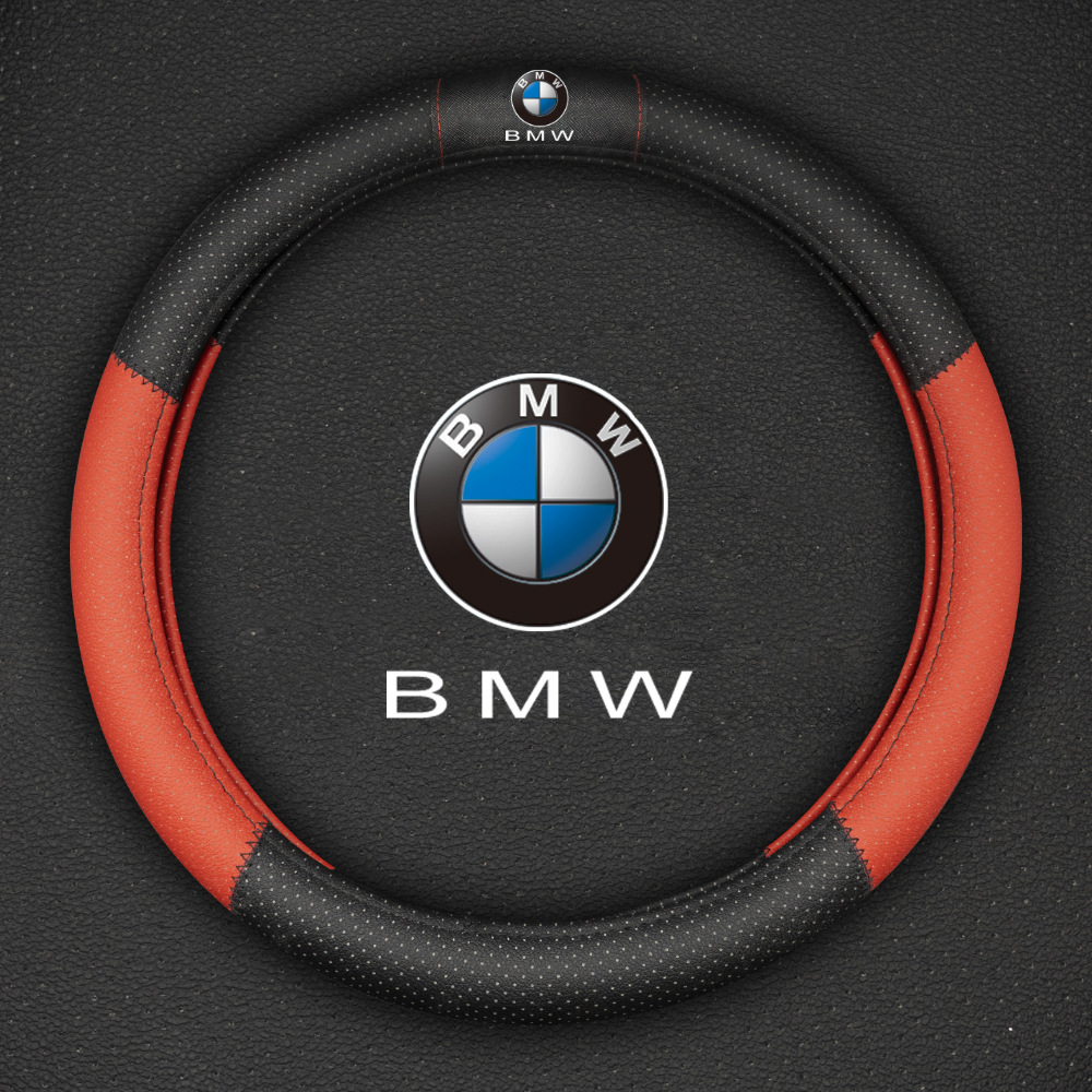 자동차 로고 자동차 범용 스티어링 휠 커버 핸들 커버 가죽 땀 흡수성 통기성 라운드 스포츠 미끄럼 방지 새로운스토어 가기