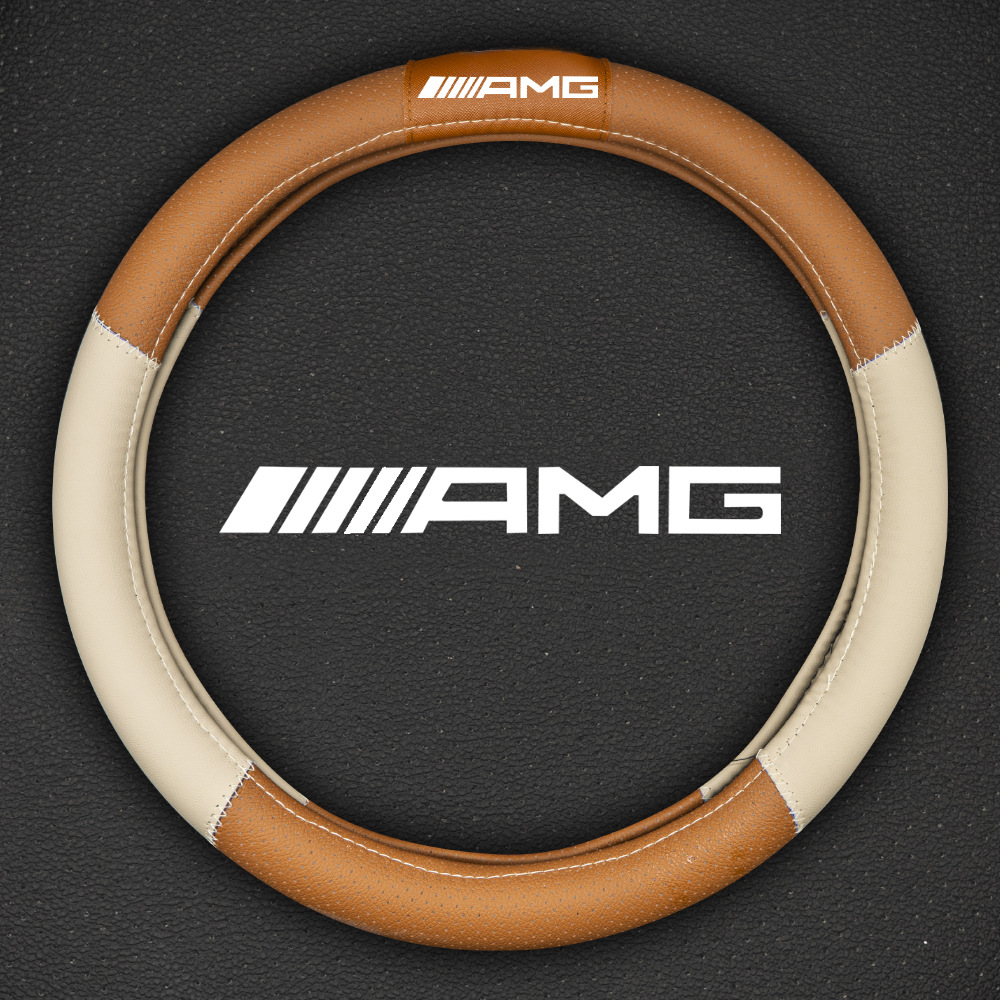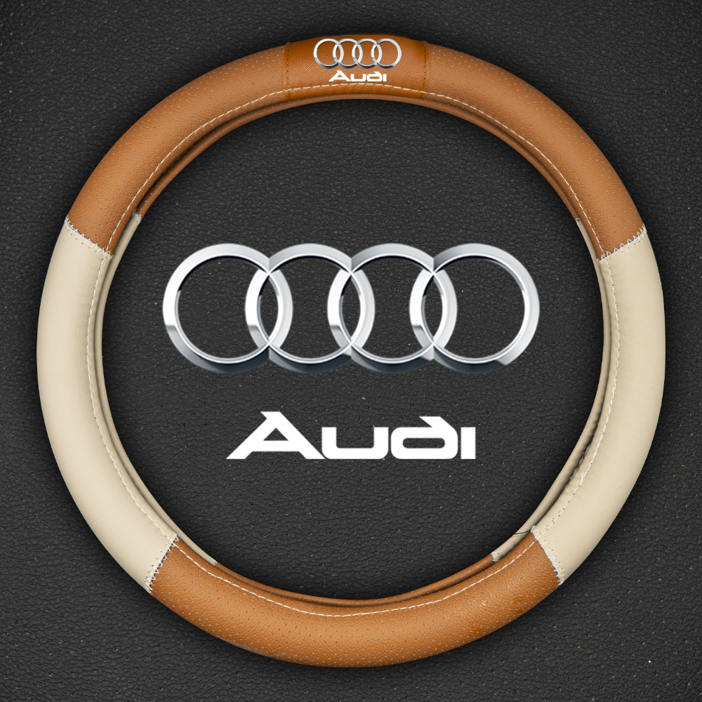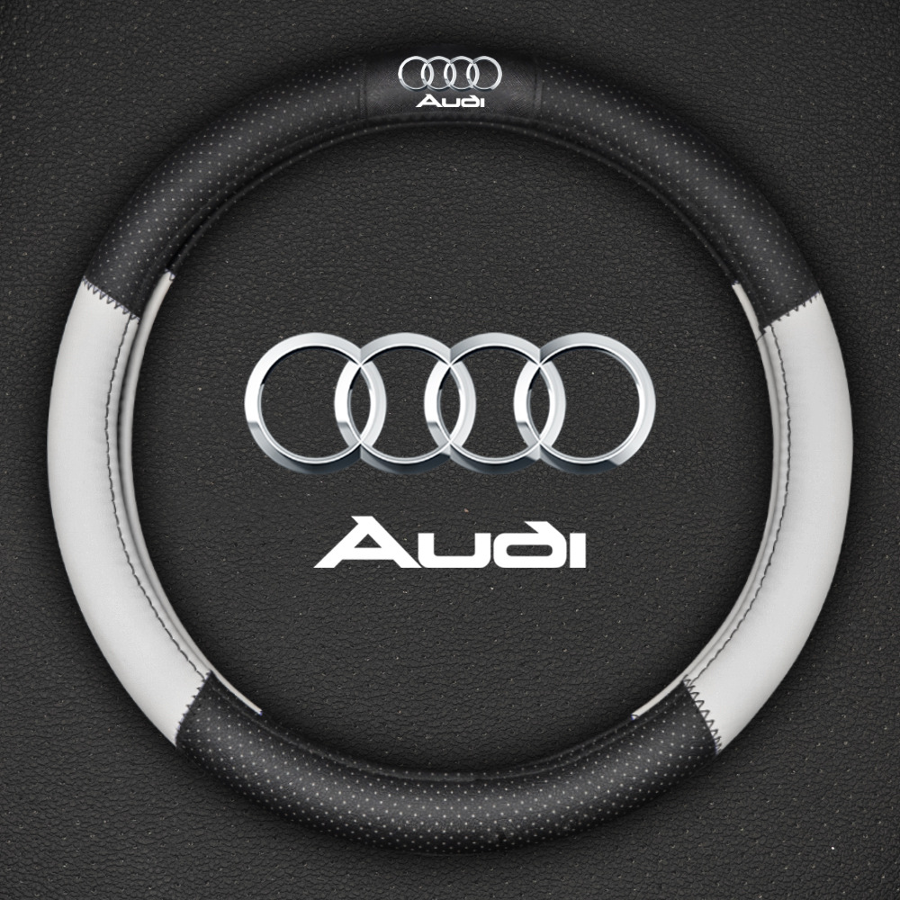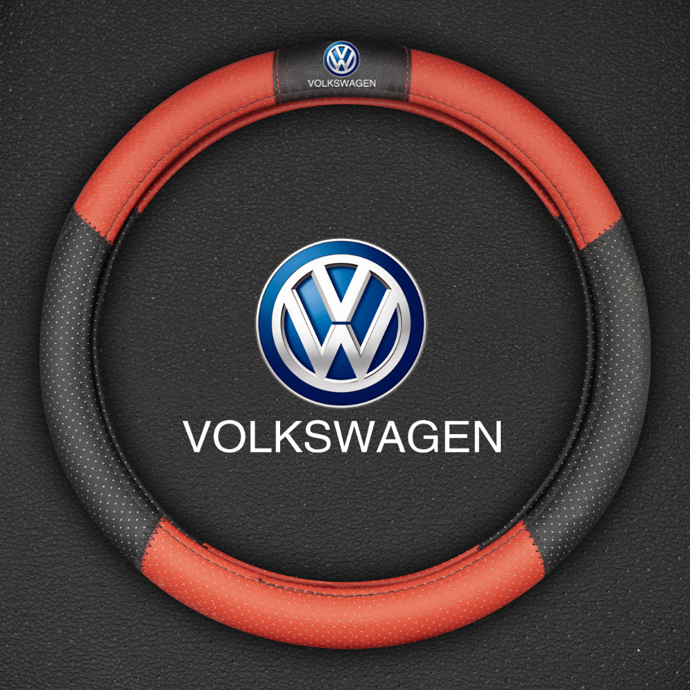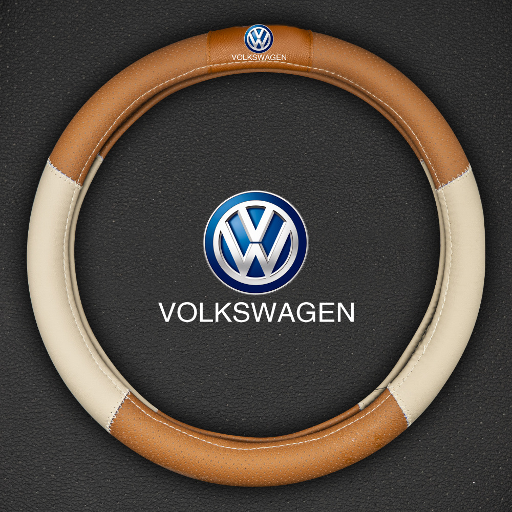 자동차 로고 자동차 범용 스티어링 휠 커버 핸들 커버 가죽 땀 흡수성 통기성 라운드 스포츠 미끄럼 방지 새로운스토어 가기
