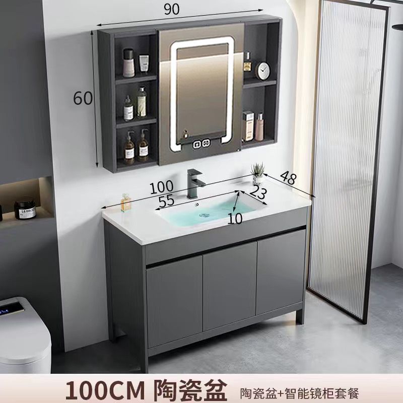 • 90 세라믹 세면대 + 김서림 방지 스마트 거울 캐비닛