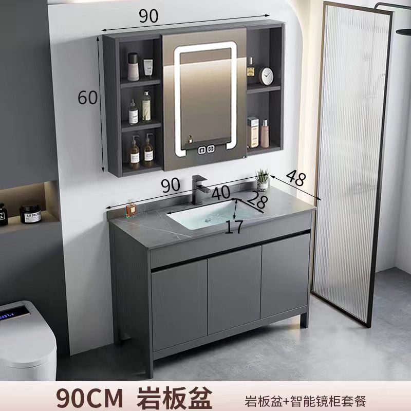 • 90 회색 석판 세면대 + 김서림 방지 스마트 거울 캐비닛