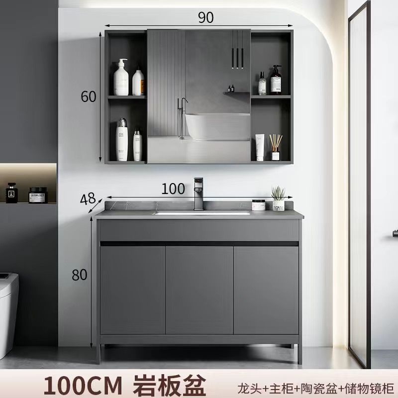 • 90 회색 석판 세면대 + 수납 거울 캐비닛