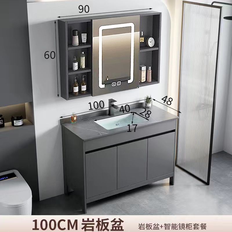• 100 회색 석판 세면대 + 김서림 방지 스마트 거울 캐비닛