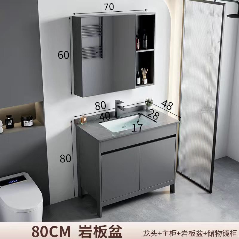• 80 회색 석판 세면대 + 김서림 방지 스마트 거울 캐비닛