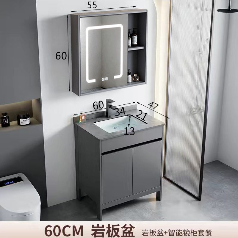 • 60 회색 석판 세면대 + 김서림 방지 스마트 거울 캐비닛