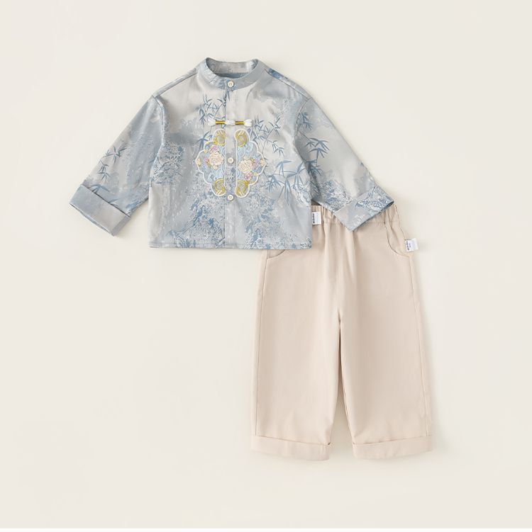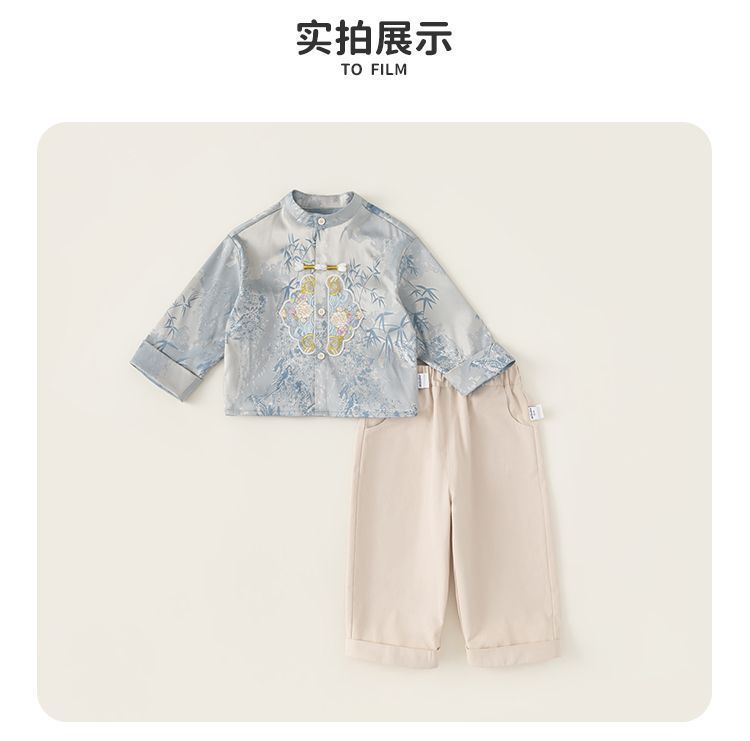 소년 한푸 중국식 투피스 세트 가을 어린이 한 살짜리 행사 새로운 중국식 젊은 마스터 버클 탑 바지 세트스토어 가기