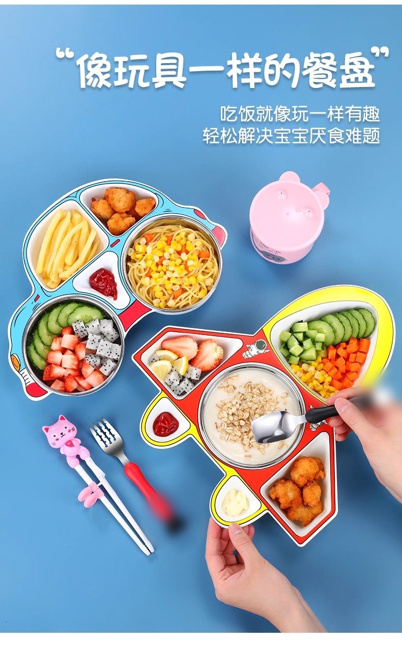유치원 어린이 디너 플레이트 식품 학년 304 스테인레스 스틸 전기 플레이트 가정용 베이비 디너 플레이트 보충 식기스토어 가기
