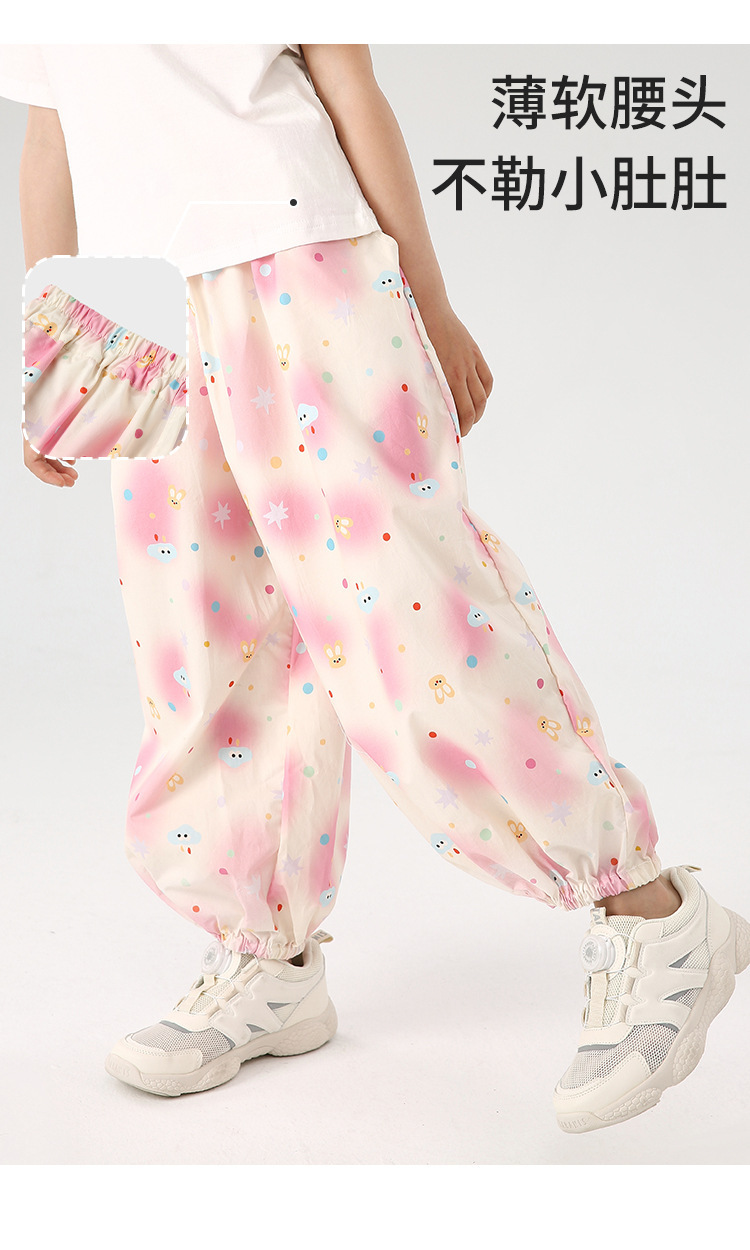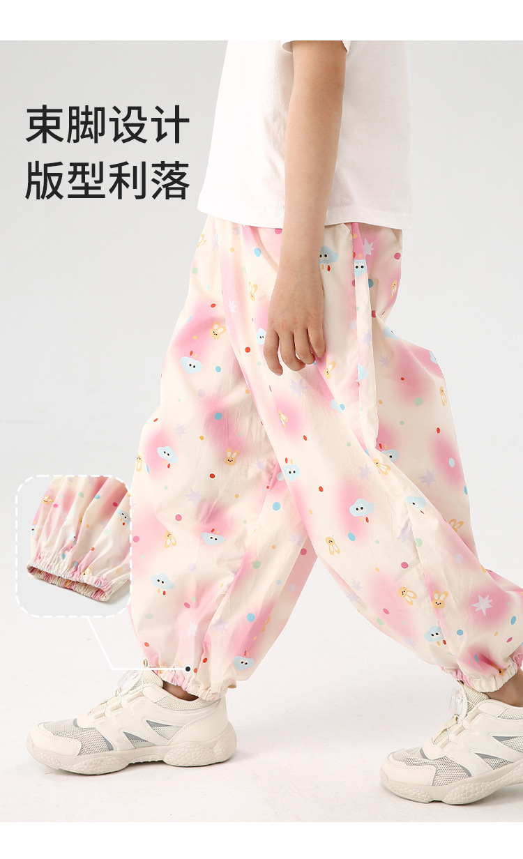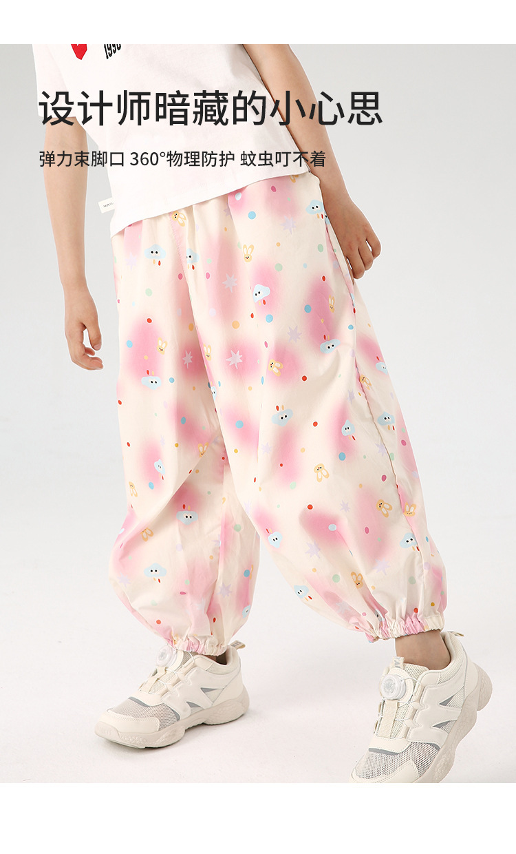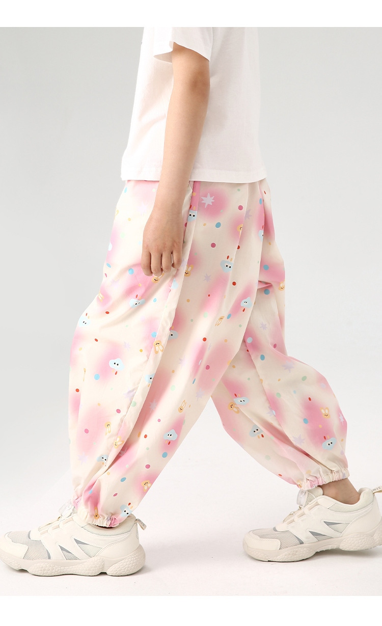 J207 디자이너 어린이 모기 방지 바지 핑크 흰색 그라디언트 소녀 바지 여름 번들 발 순면 어린이 캐주얼 바지