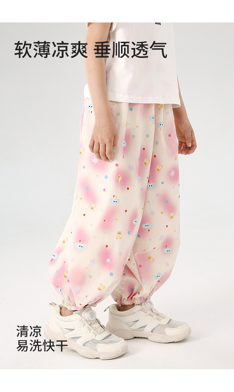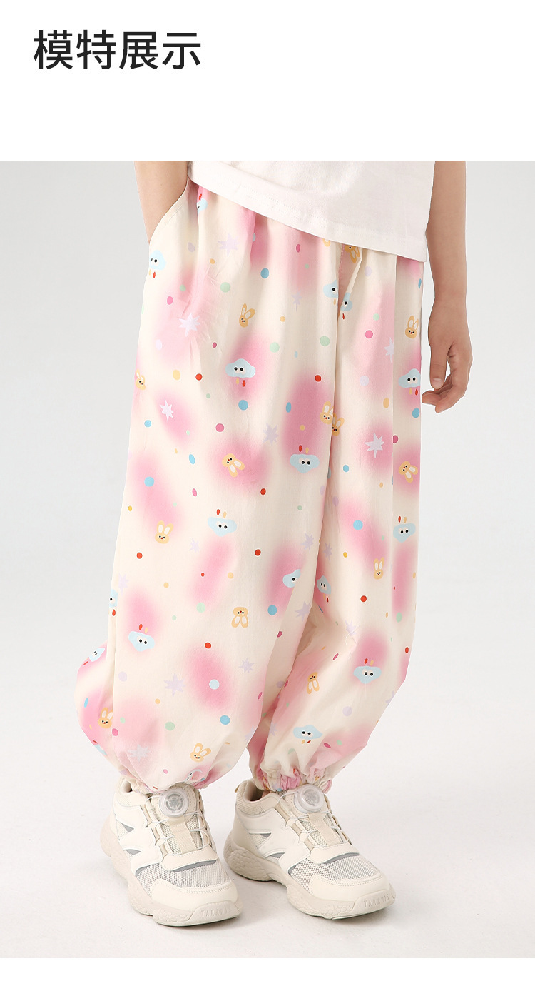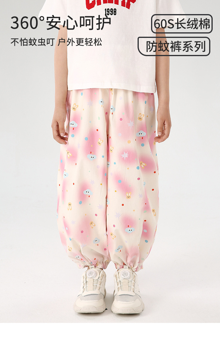 J207 디자이너 어린이 모기 방지 바지 핑크 흰색 그라디언트 소녀 바지 여름 번들 발 순면 어린이 캐주얼 바지