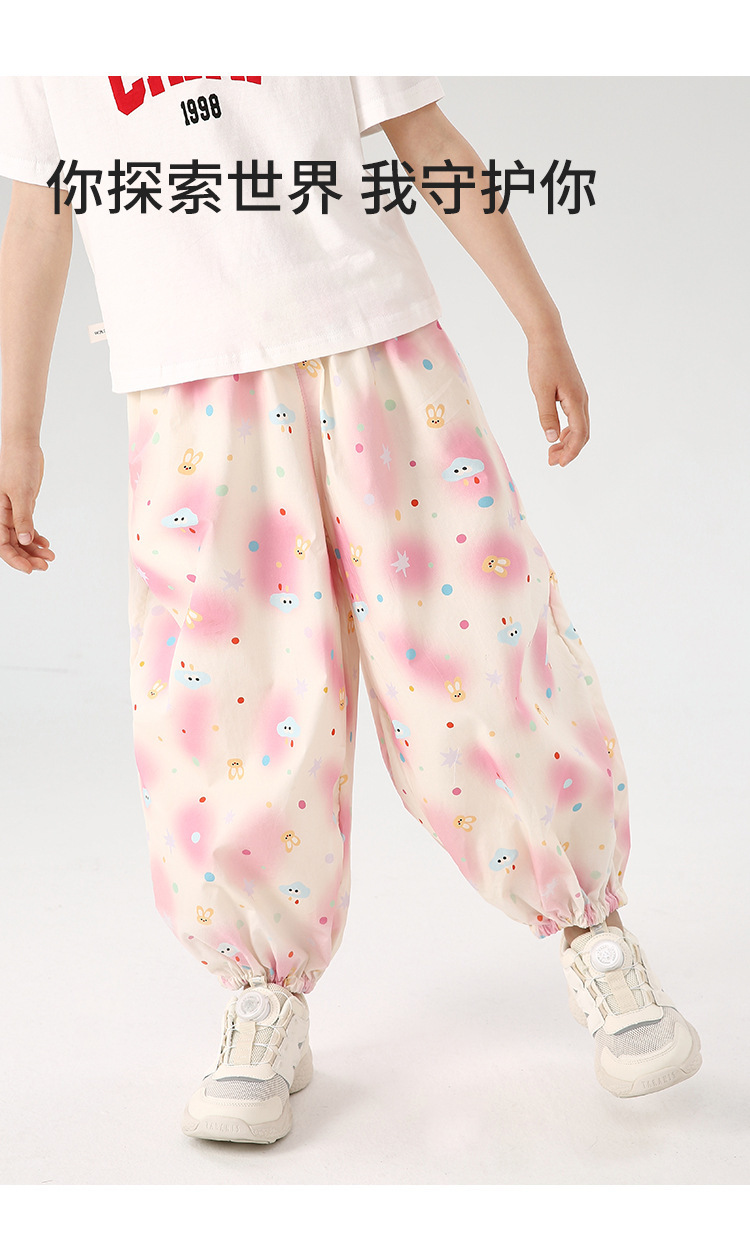 J207 디자이너 어린이 모기 방지 바지 핑크 흰색 그라디언트 소녀 바지 여름 번들 발 순면 어린이 캐주얼 바지스토어 가기