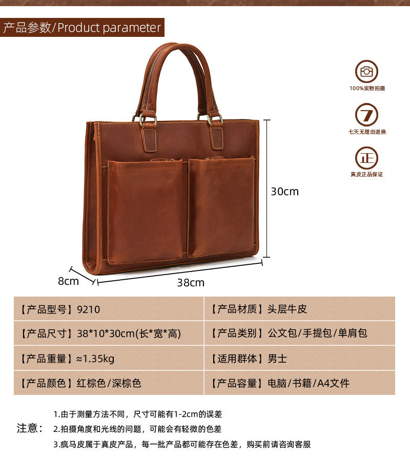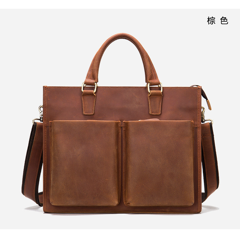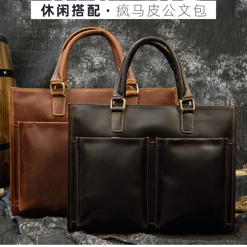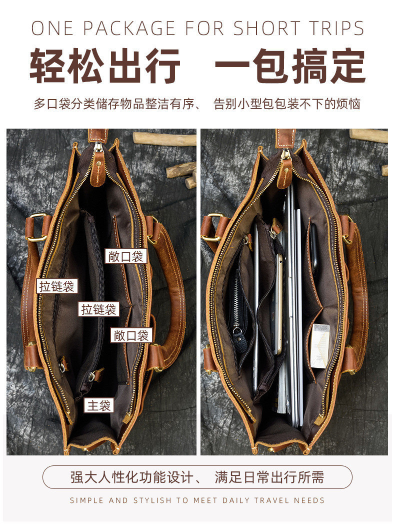 빈티지 소가죽 남성용 핸드백 대용량 공식 비즈니스 패션 가방 남성용 정품 가죽 15.6 인치 컴퓨터 경사 ryh스토어 가기