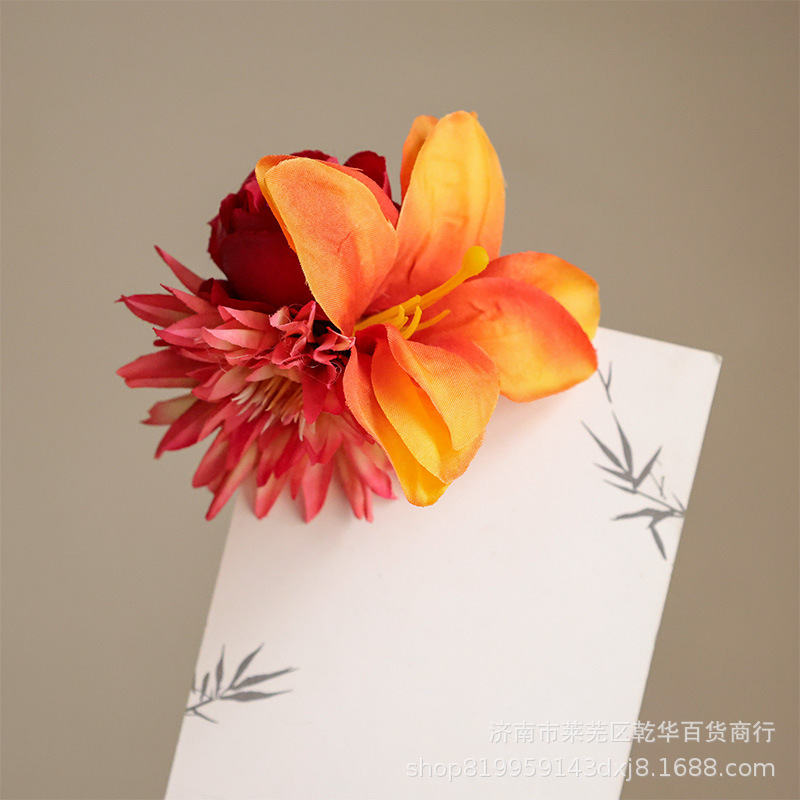 하이 엔드 봄 소녀 실크 꽃 머리 장식 높은 가치 중국 의류 액세서리 고대 머리핀 슈퍼 요정 스타일의 골동품 사이드 클립