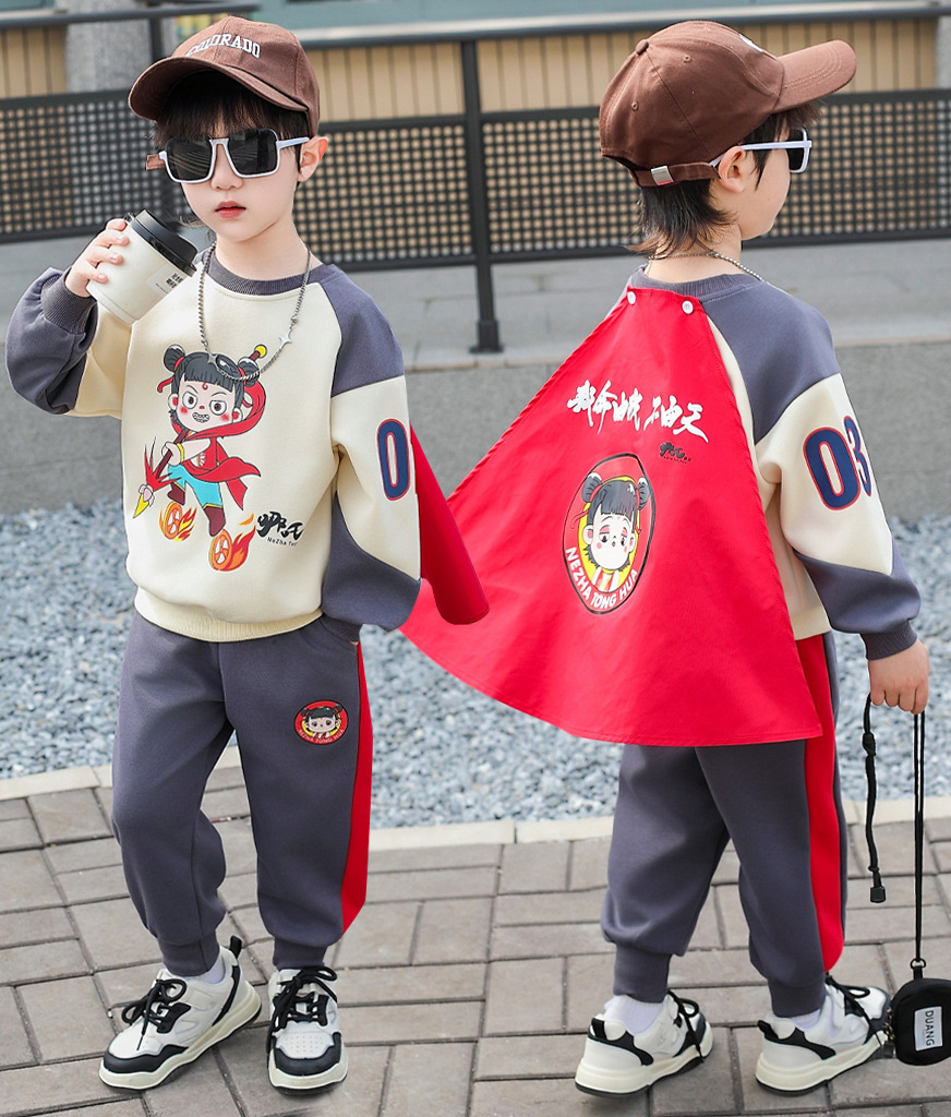 어떤 옷 소년 봄 세트 2025 새로운 외국 스타일의 아기 봄과 가을 소년 스포츠 스웨터 투피스 세트스토어 가기