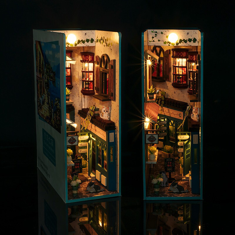 DIY 캐빈 수제 미니 하우스 모델 북 스탠드 조립 건물 장난감 창조적 인 생일 선물 여성 3D스토어 가기