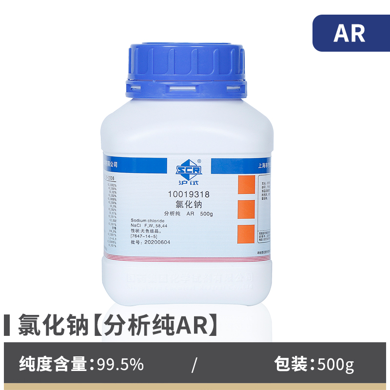 염화나트륨 분석 순수 한약 상하이 시험 화학 시약 NaCl AR 500g 상하이 시험 내용 99.8 무색