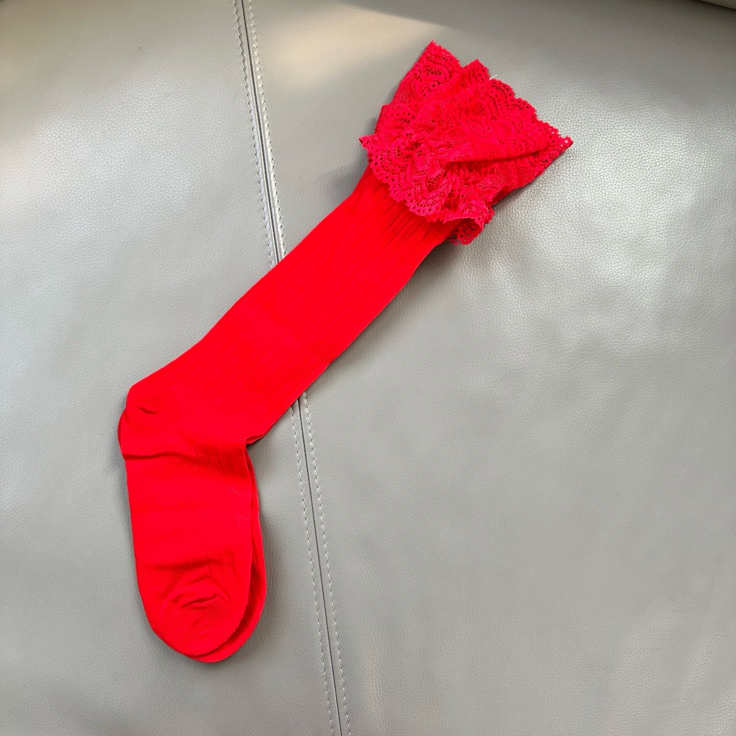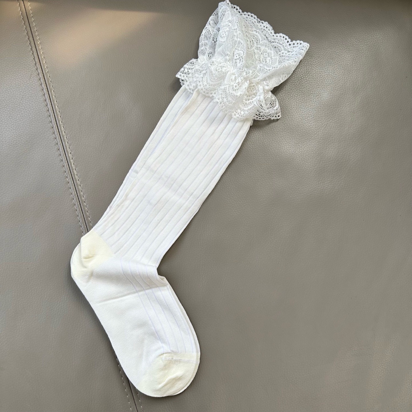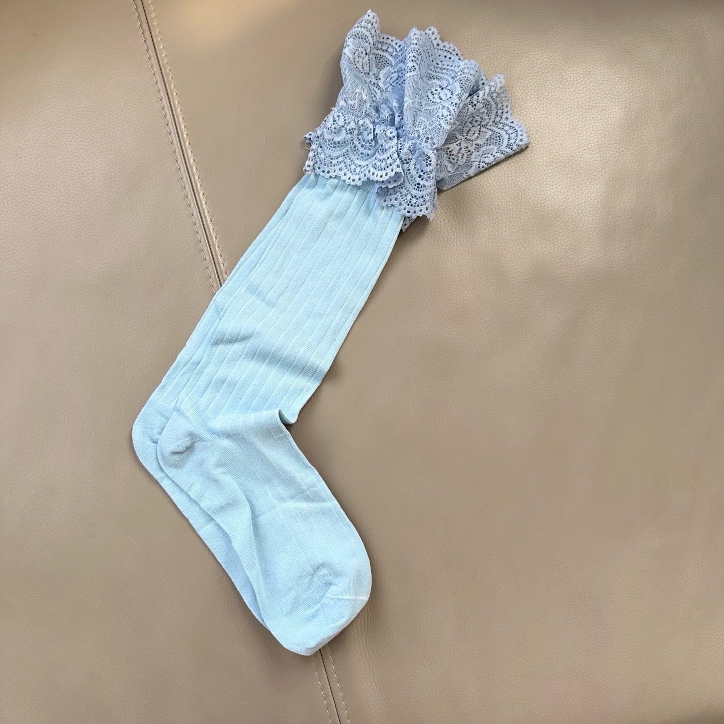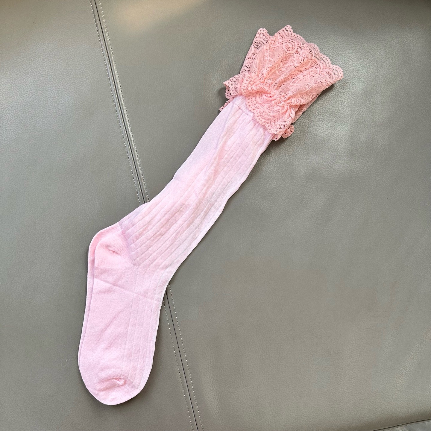 한국 봄 여름 얇은 와이드 레이스 컬러풀 스트라이프 양말 무릎 높이 스타킹 중간 길이 양말 라이브 도매 배송