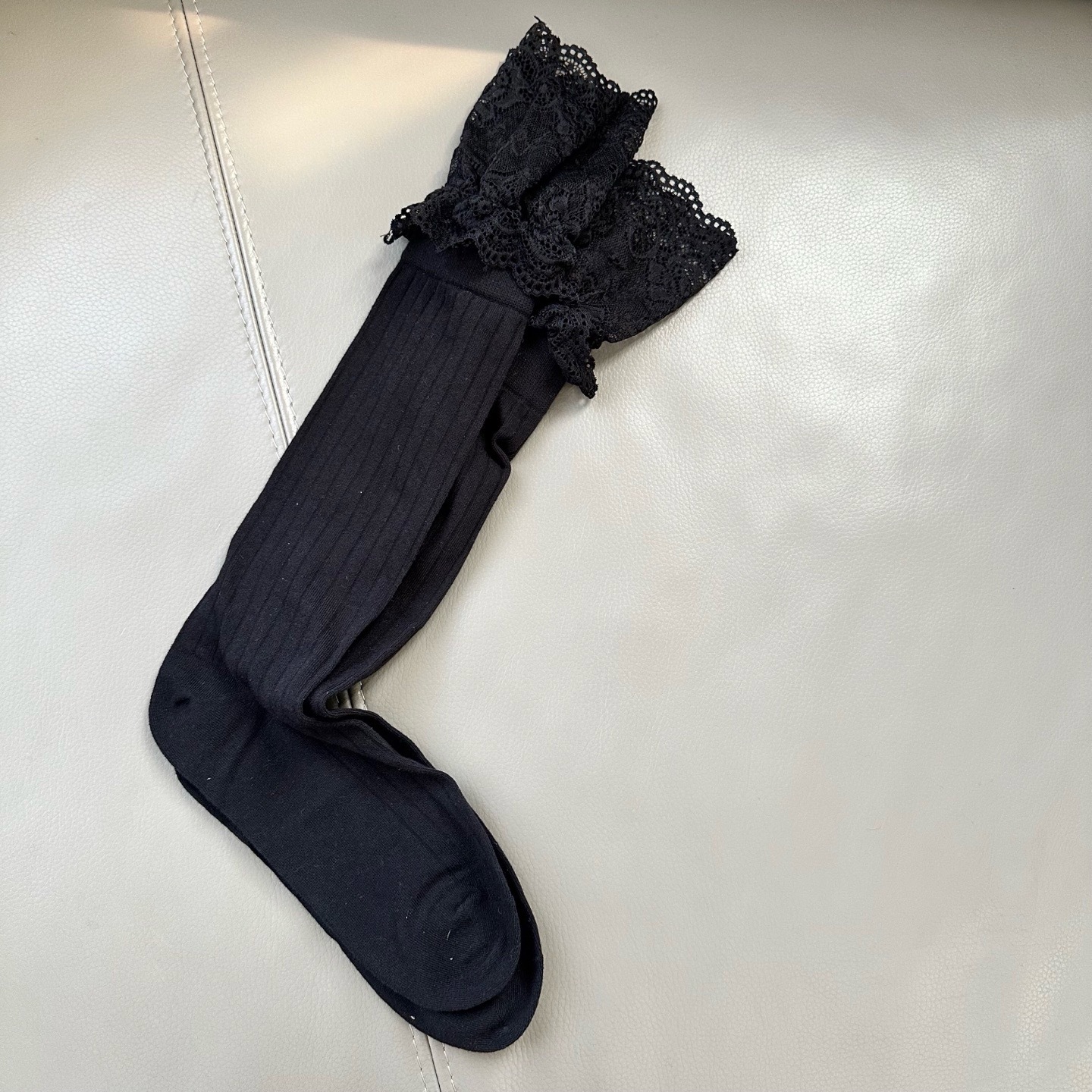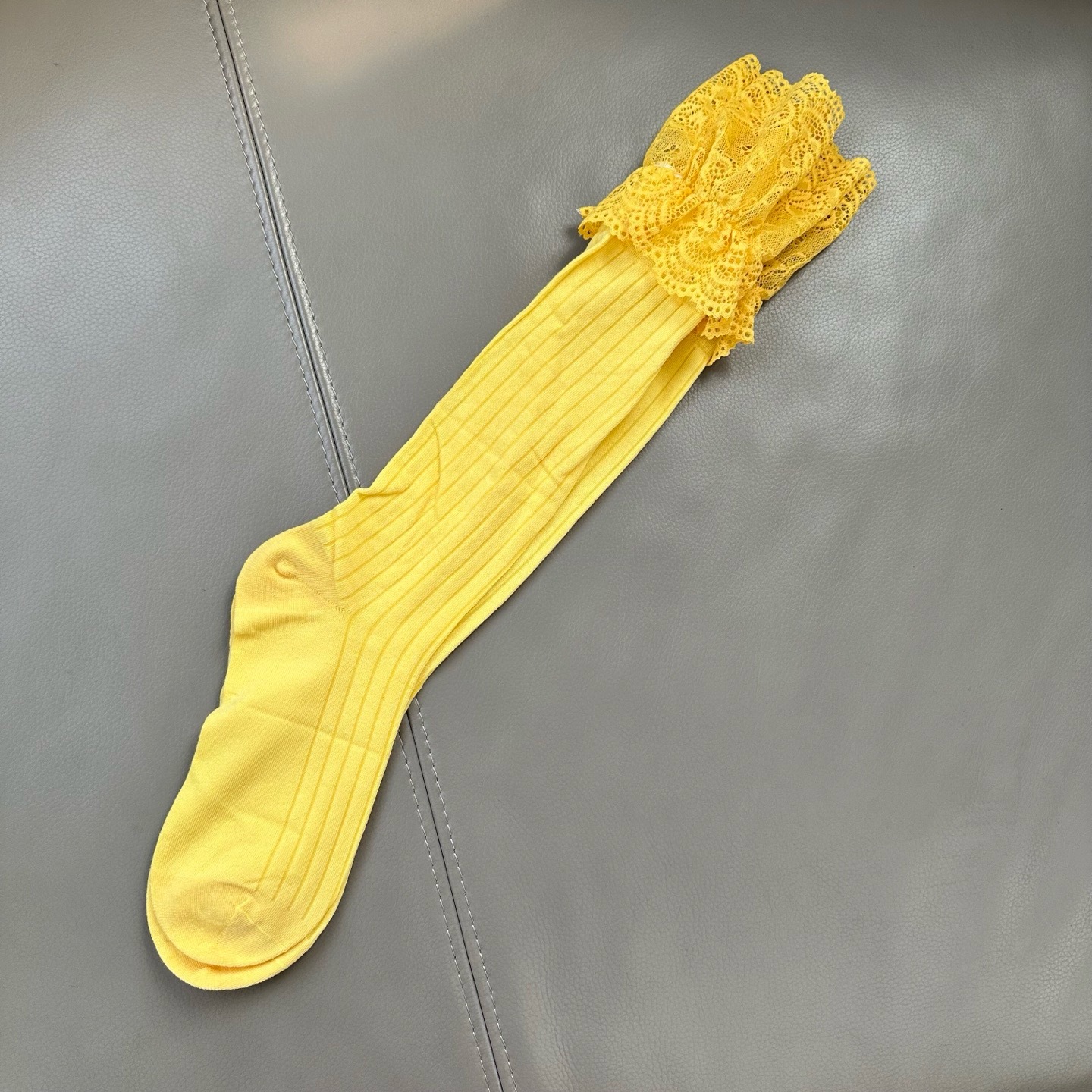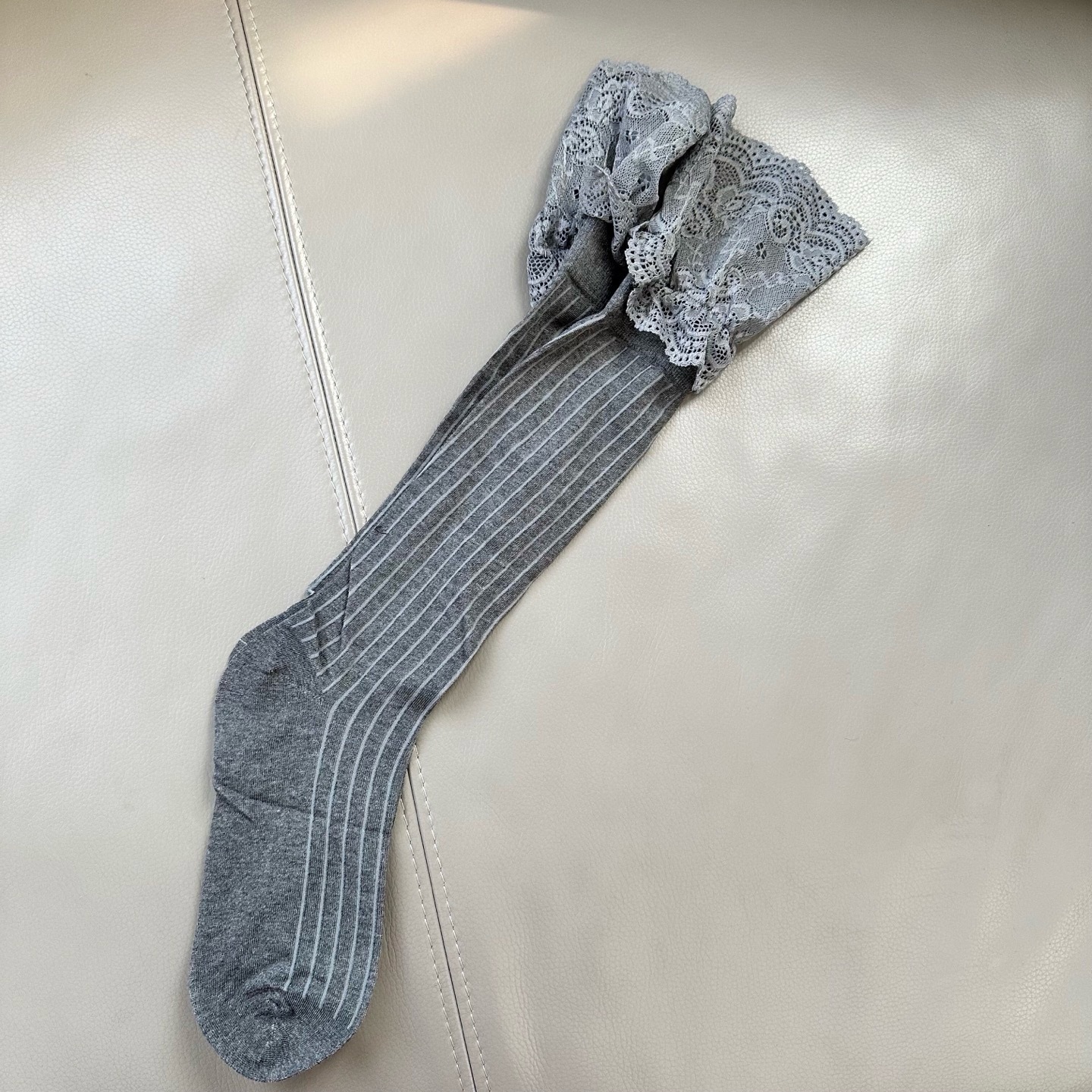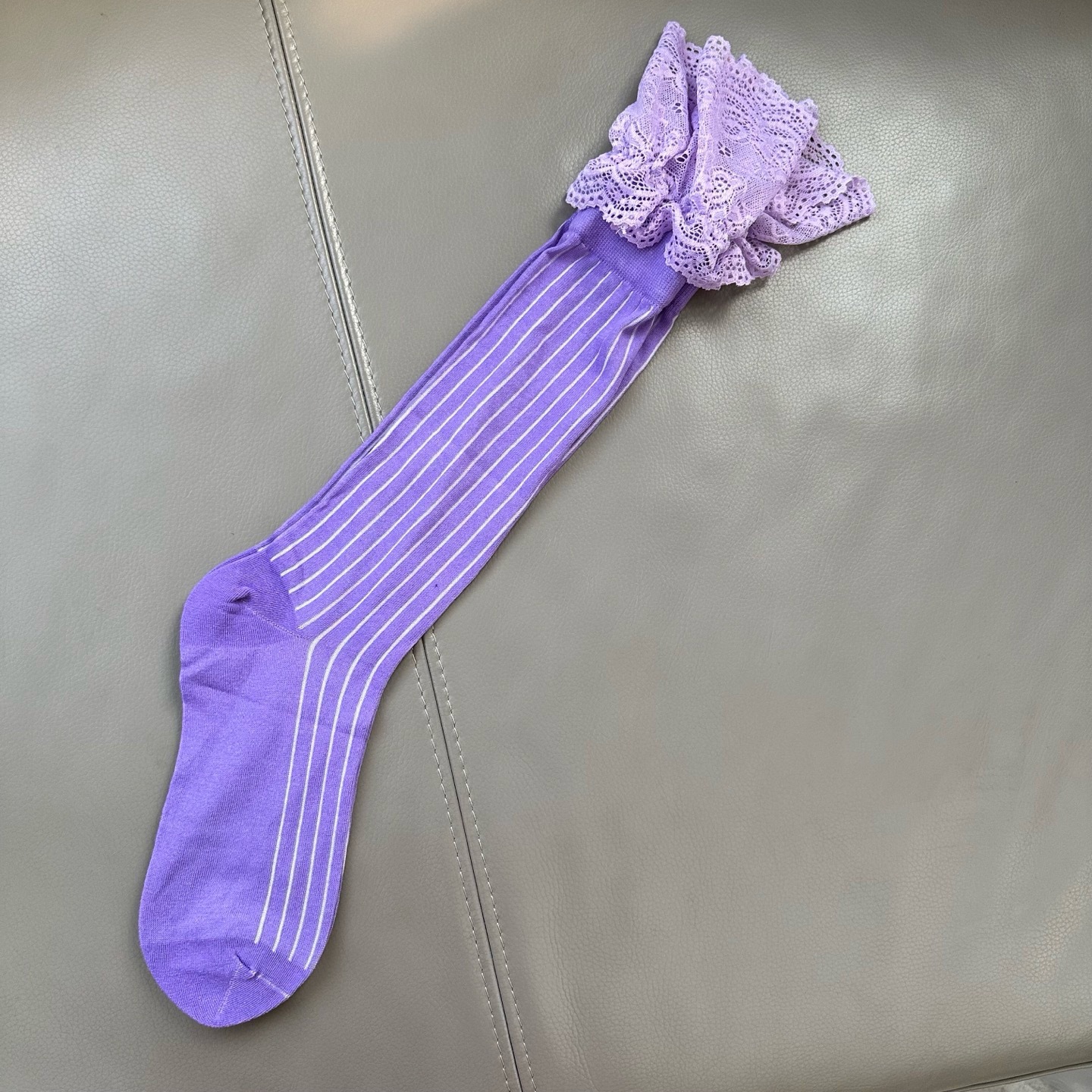 한국 봄 여름 얇은 와이드 레이스 컬러풀 스트라이프 양말 무릎 높이 스타킹 중간 길이 양말 라이브 도매 배송스토어 가기