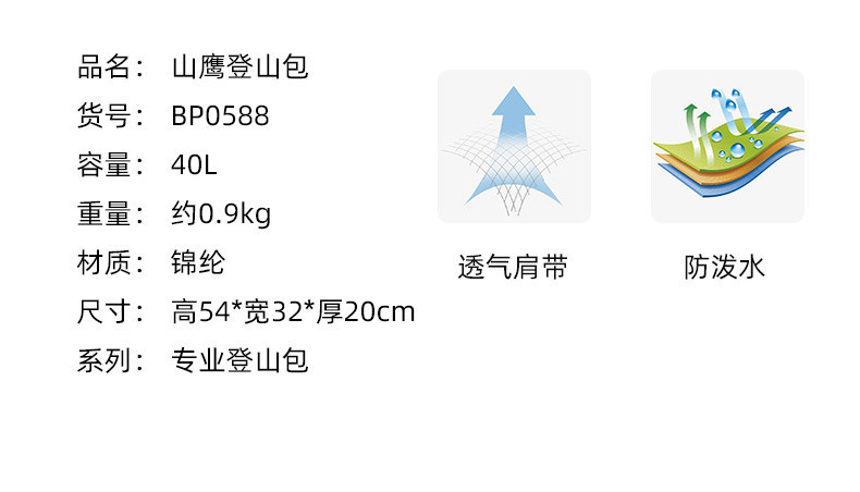 야외 전문 등산 가방 중단 배낭 하이킹 배낭 남성 경량 여행 Ryh