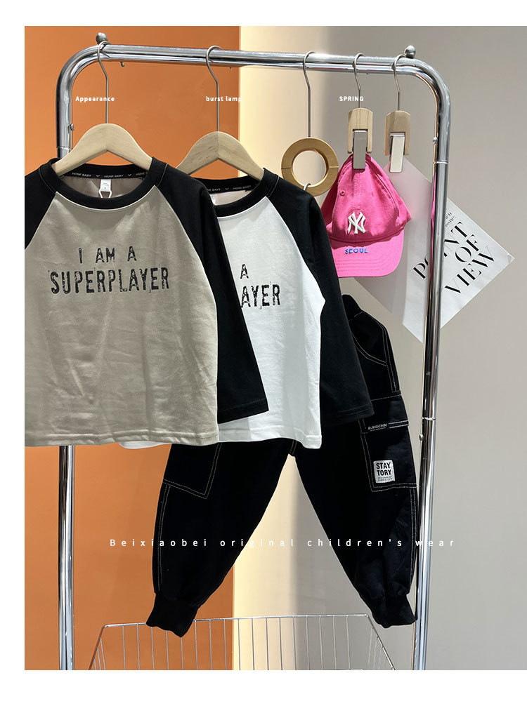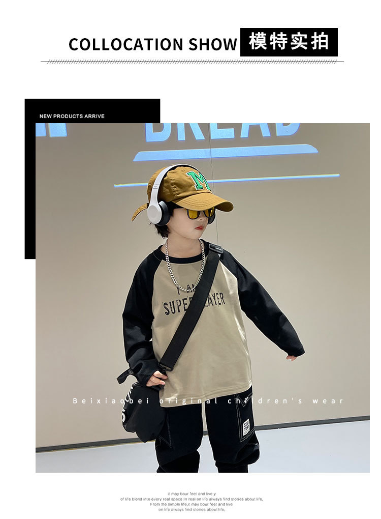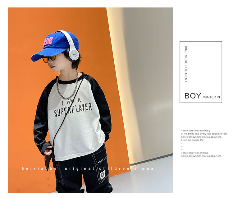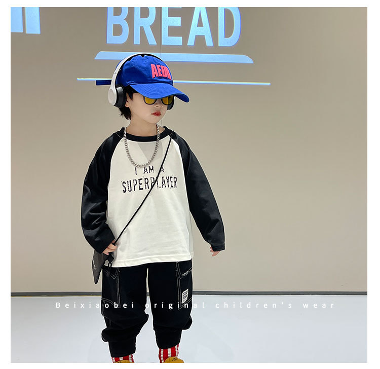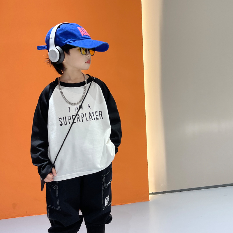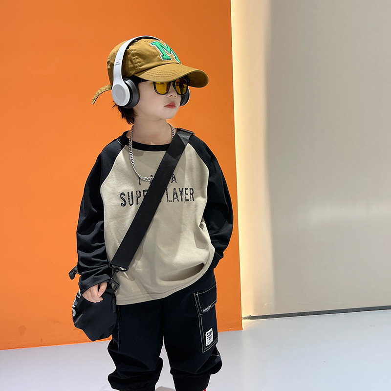소년 긴팔 티셔츠 봄 2025 새로운 어린이 세련된 라글란 슬리브 탑 4 아기 유행 루즈베이스 셔츠스토어 가기