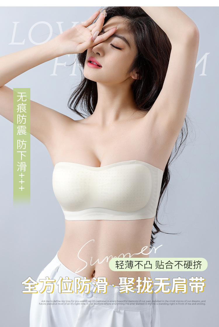 시원한 감각 끈이없는 속옷 여성의 미끄럼 방지 푸시 업 가슴 포장 여름 얇은 보이지 않는 튜브 길이 미끄럼 방지 내부 브래지어스토어 가기