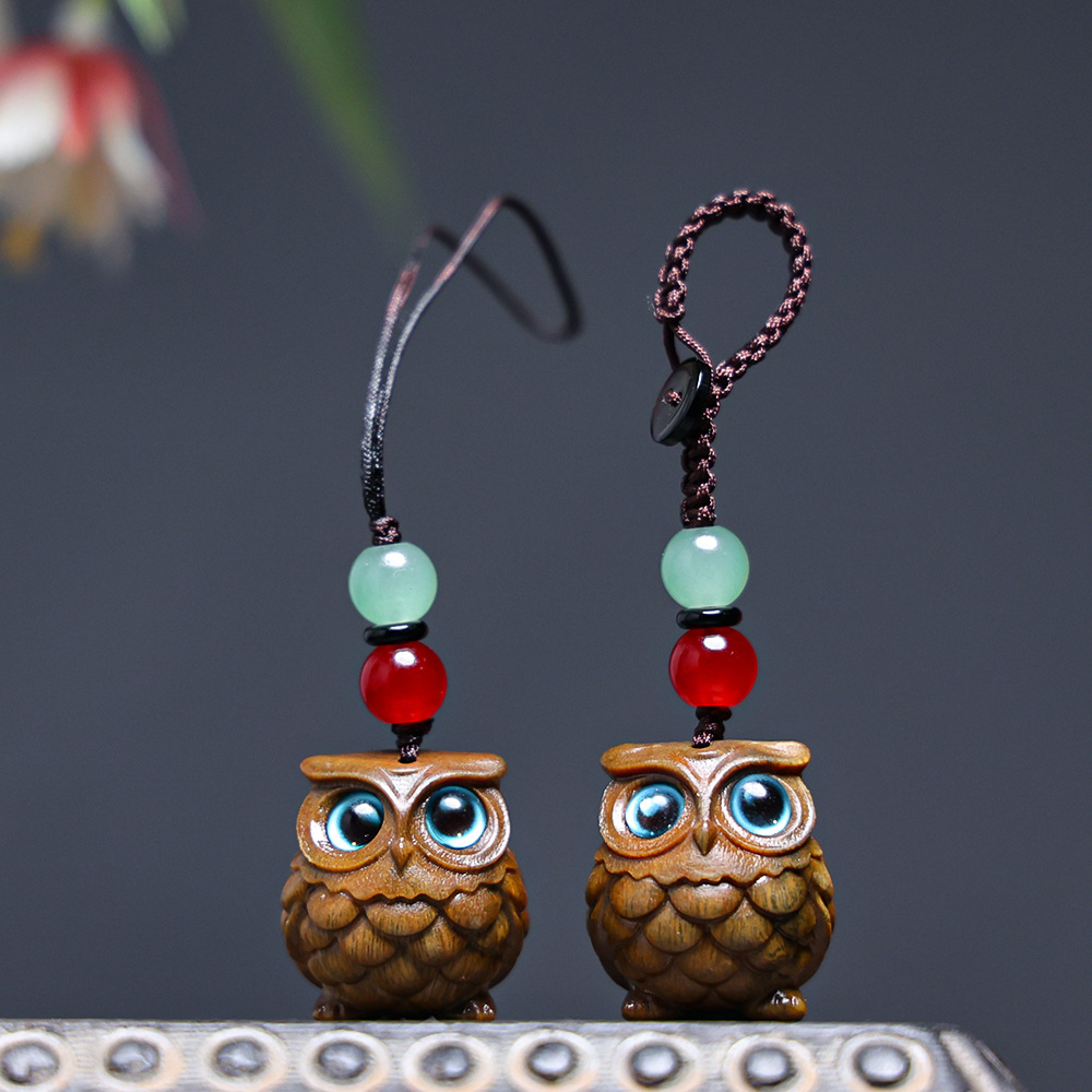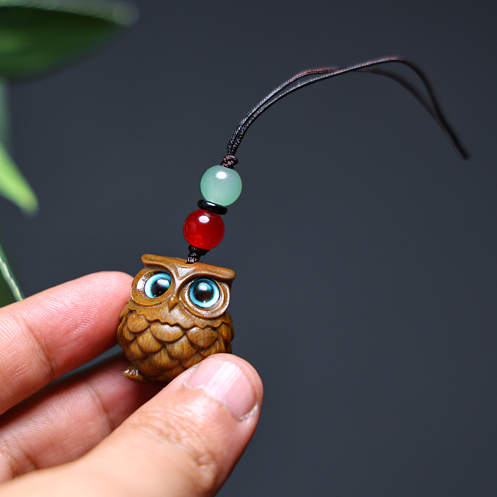 • 녹색 백단 올빼미 휴대폰 펜던트