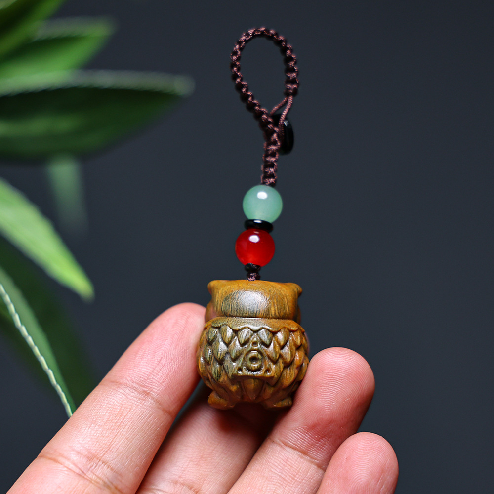 사이버 축하 그린 샌달 우드 올빼미 자동차 키 체인 펜던트 남녀 커플 키 걸이 체인 크리에이티브 배낭 펜던트