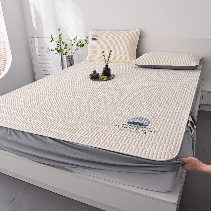 여름 아이스 실크 라텍스 매트 3 조각 세트 침대 커버 접는 기숙사 학생 단일 세척 가능한 가정용 에어컨 매트스토어 가기