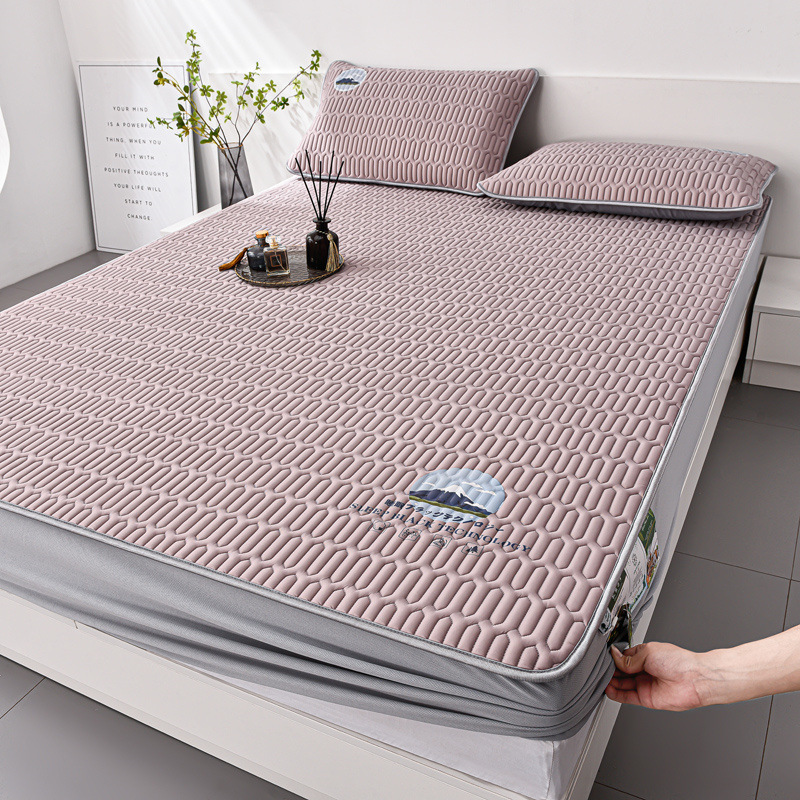 여름 아이스 실크 라텍스 매트 3 조각 세트 침대 커버 접는 기숙사 학생 단일 세척 가능한 가정용 에어컨 매트