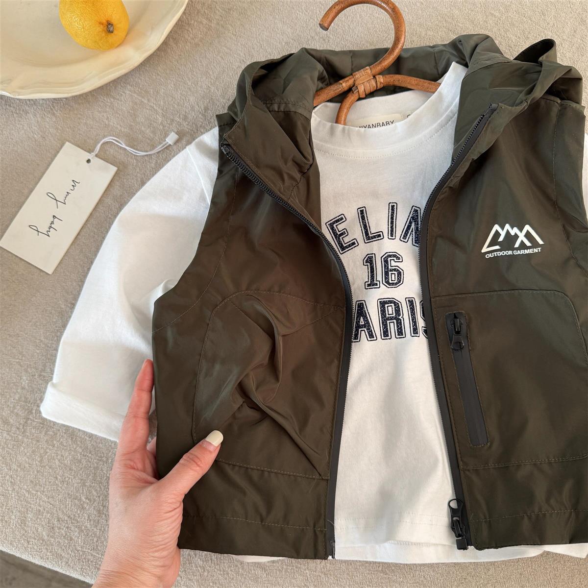 어린이 코트 2025 봄과 가을 일본 패션 브랜드 후드 마운틴 조끼 소년 소녀스토어 가기
